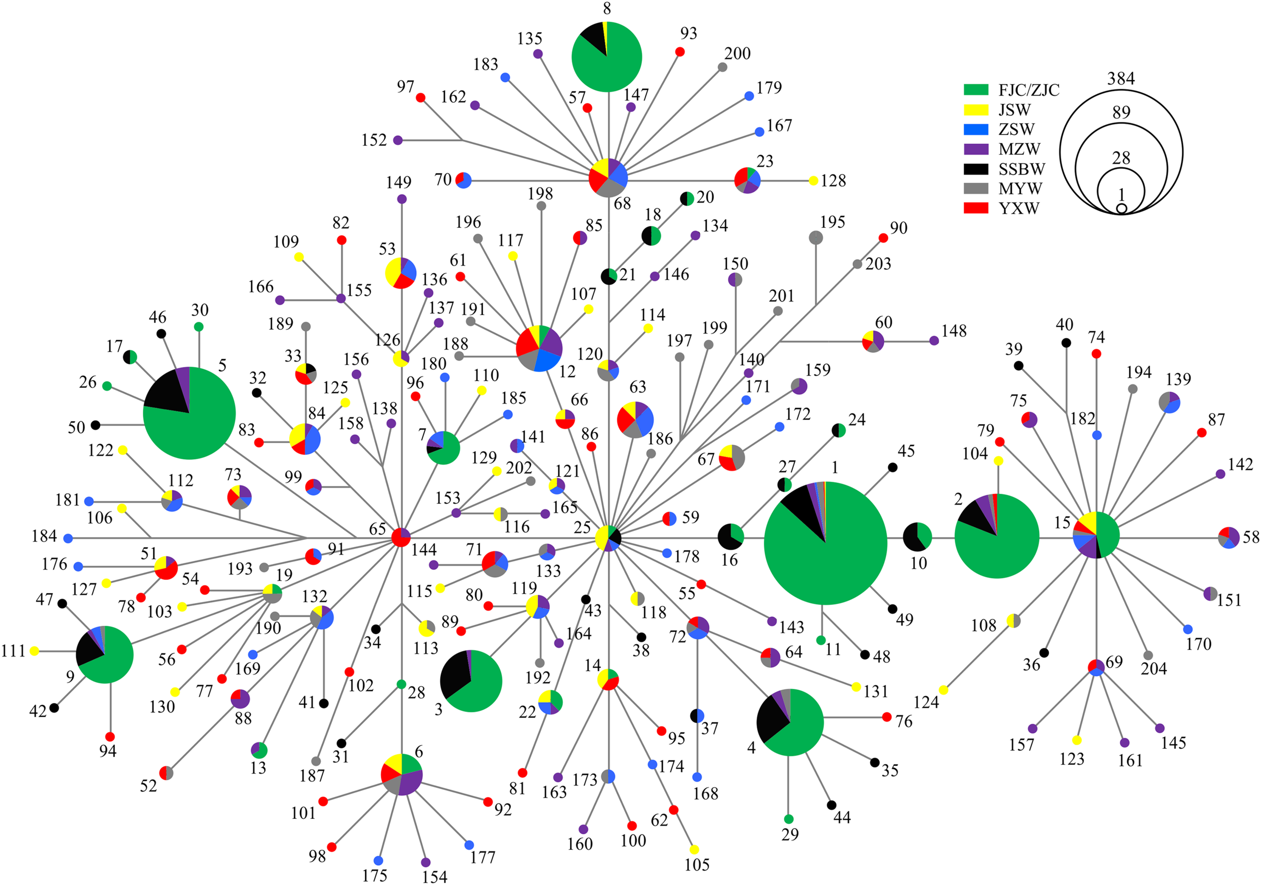 | Haplotype | ZJC | FJC | JSW | ZSW | MZW | SSBW | MYW | YXW | Proportion |