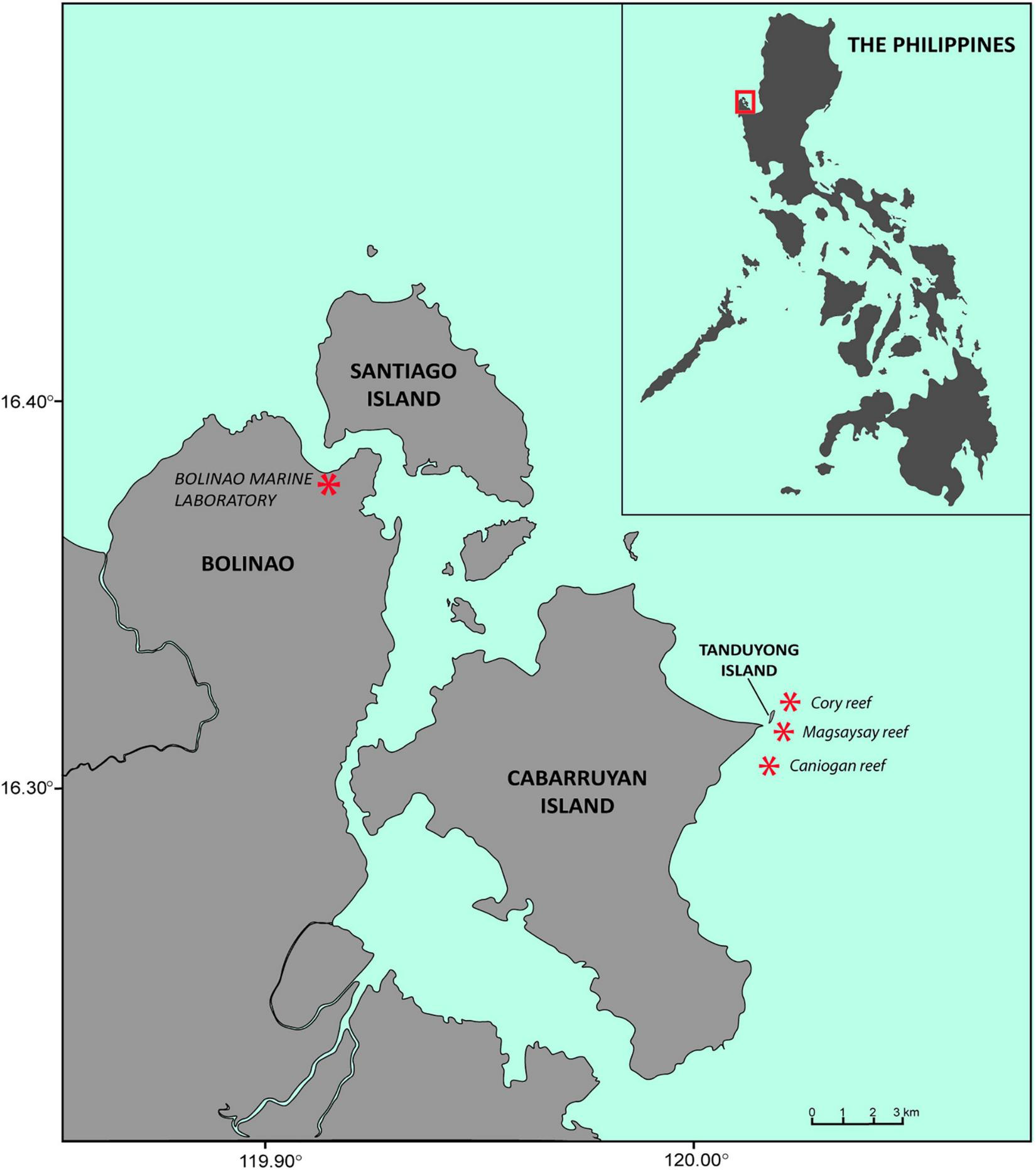 Prior to the early 1980s, BARC reefs were characterised by relatively high 30–50% mean live coral cover and healthy reef status (Gomez et al., 1981). However, extensive blast fishing, aquaculture development and crown-of-thorns starfish outbreaks severely impacted coral and other reef communities in the Lingayen Gulf, resulting in degradation of these reefs during subsequent decades (Cruz-Trinidad et al., 2009; dela Cruz and Harrison, 2017). Blast fishing has since been banned and has now effectively ceased in local communities from Anda and nearby towns, hence these reefs are now potentially recoverable but are limited by low rates of natural coral recruitment (dela Cruz and Harrison, 2017).