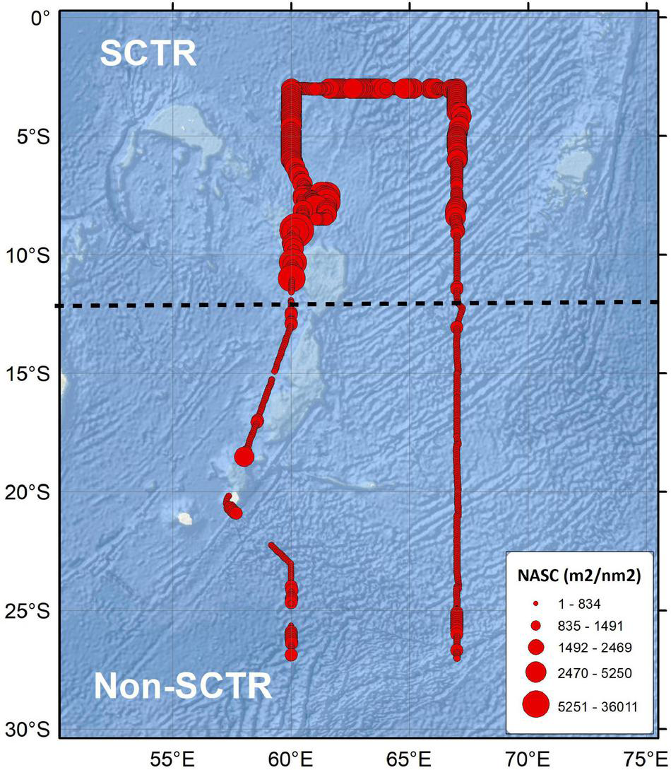 sound scattering layer, echosounder, frequency response, Seychelles-Chagos Thermocline Ridge, southwest Indian Ocean