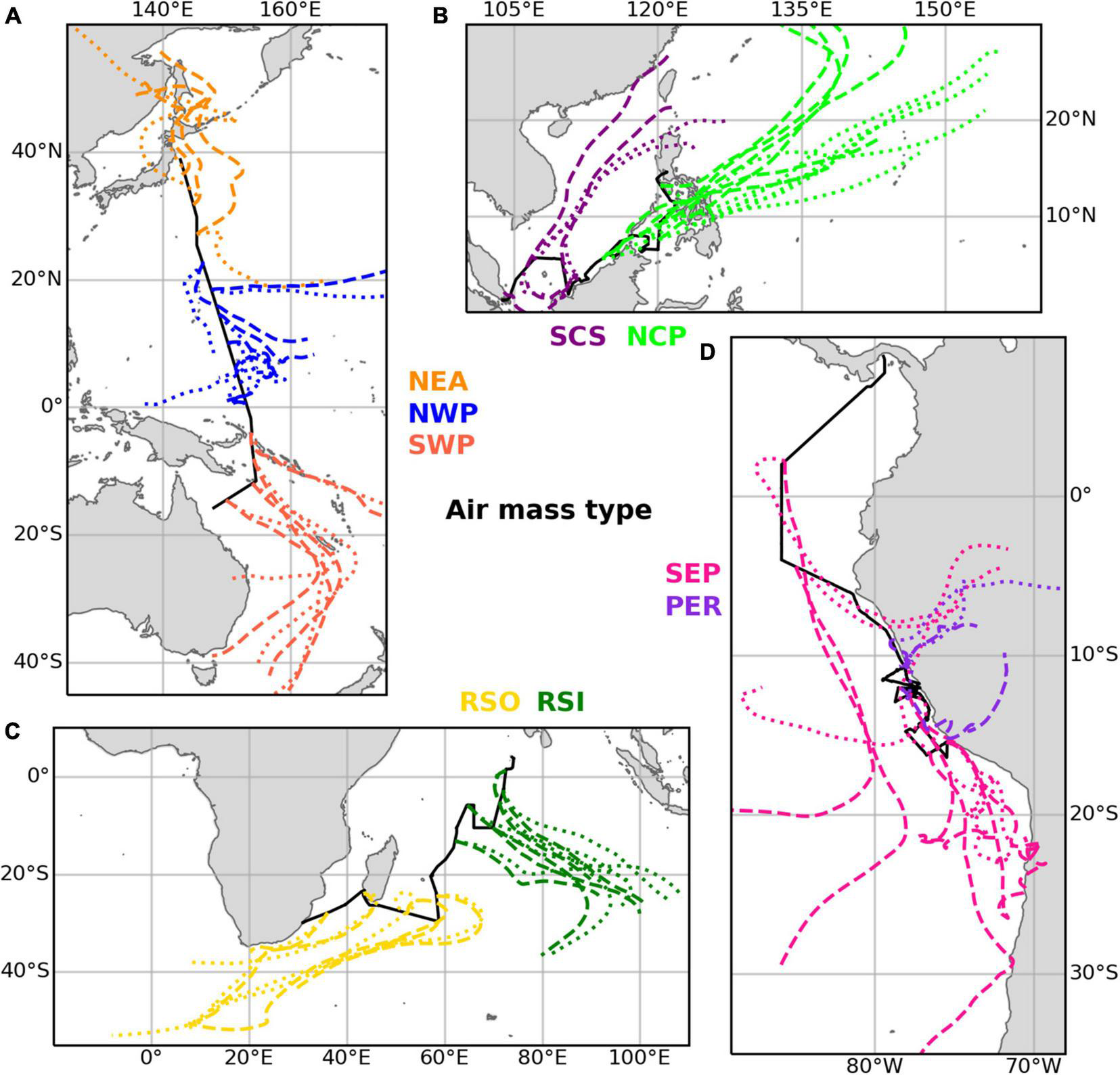 | Southeast Pacific (SEP) | M138 | 6 | M05, M09-M11, M14, M15 | Air masses travelled over the southeast Pacific Ocean. |