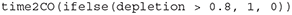 Performance metrics with respect to the CO are left to user discretion: there are no special functions in the RLA package to compute specific performance metrics. As the output from the core functions include the whole population trajectory, removals, etc. (Figures 1, 2), there is user flexibility for computing performance metrics. In the two case studies, the only performance metric that was assessed was whether the CO was reached after 100 years of implementation of a control rule for computing the removals limit. The probability with which the CO was reached was computed as the frequency of simulations with final depletion ≥ 80% of K over all simulations. One straightforward additional performance metric is the delay in population recovery with the implementation of the removals limit compared to a counterfactual situation whereby anthropogenic removals were eliminated. This metric was computed for the RLA case study (as shown in Results and associated shiny applications) using the function time2CO which requires the user to specify a number of consecutive years for which the CO must have been reached to declare success. This function calls another function get_streaks which will identify streaks of 0 and 1 in a vector. The output of a simulation includes a vector named depletion which can be used to compute the time to reach the CO as follows: