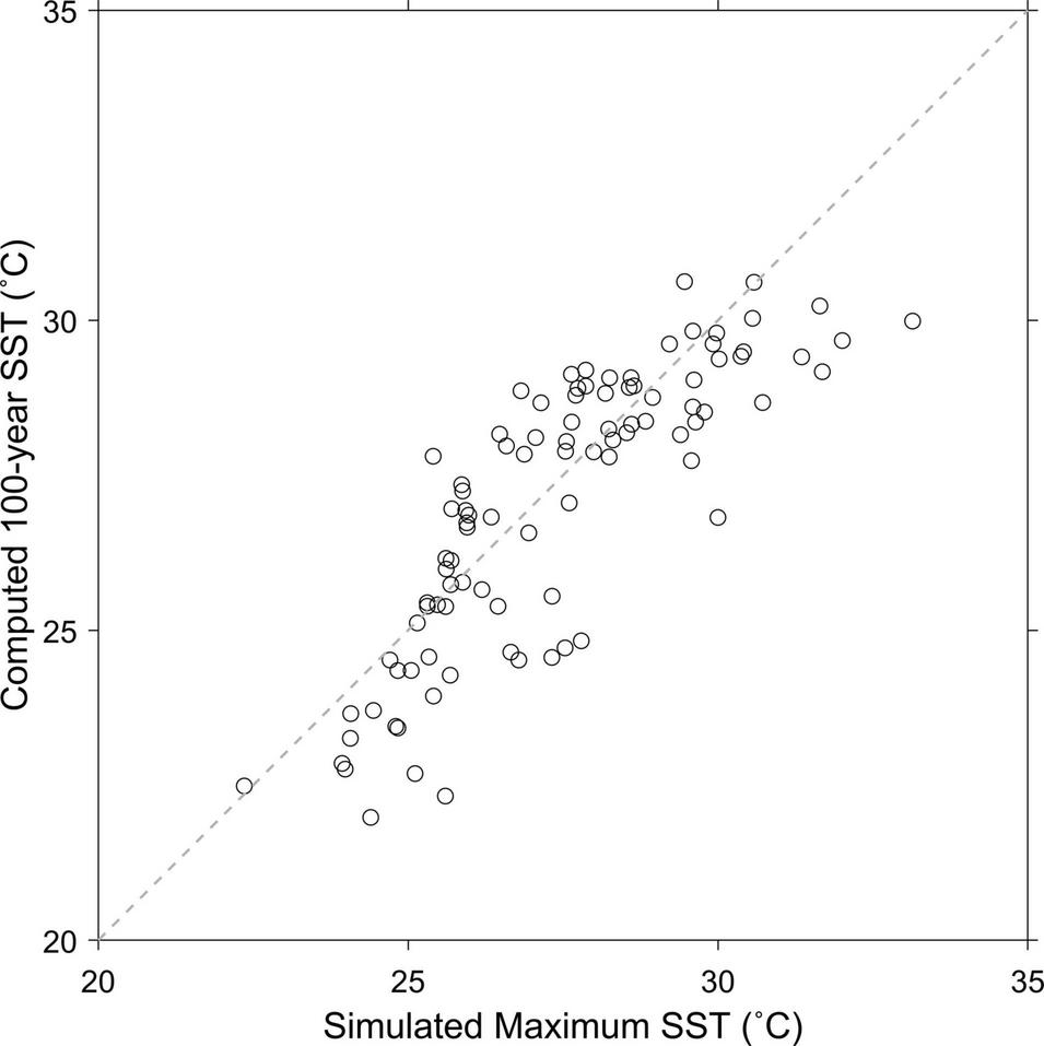 Comparison of the Computed Extreme Sea Surface Temperatures to Numerical Model Simulation