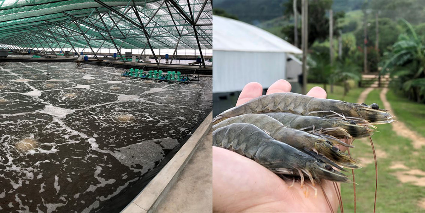 Different scales currently utilized in commercial biofloc-based shrimp farming: large-scale farm in Vietnam, Asia (left); and small-scale “boutique close to market” farm in Brazil, Latin America (right).