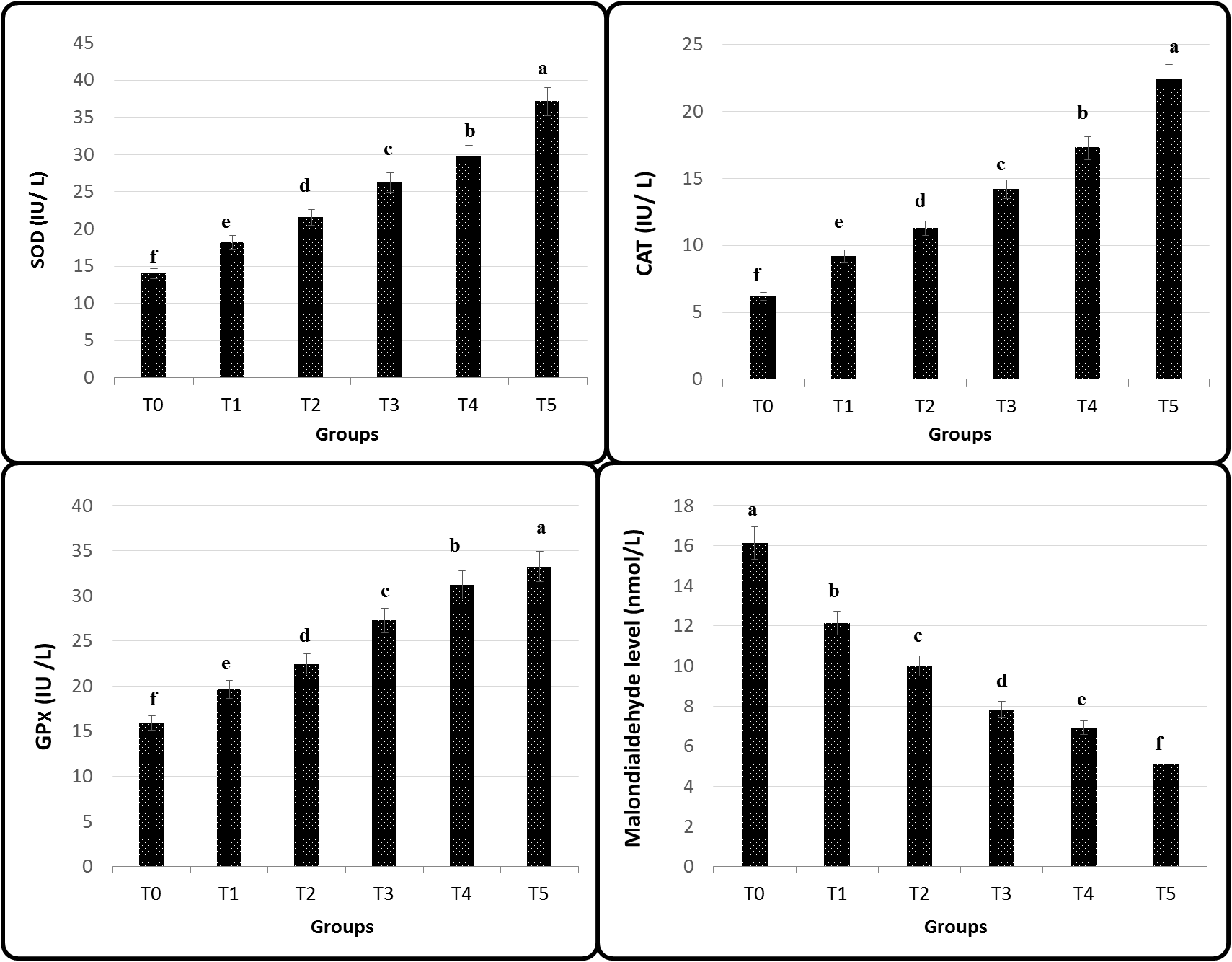 Enzymatic antioxidants including GPx, CAT, and SOD were analyzed in fish serum by the diagnostic kits (Biodiagnostic Co., Egypt) according to Paglia and Valentine (1967); Aebi (1984), and Kakkar et al. (1984). The concentration of serum MDA as a lipid peroxidation biomarker was determined, according to Yoshioka et al. (1979).