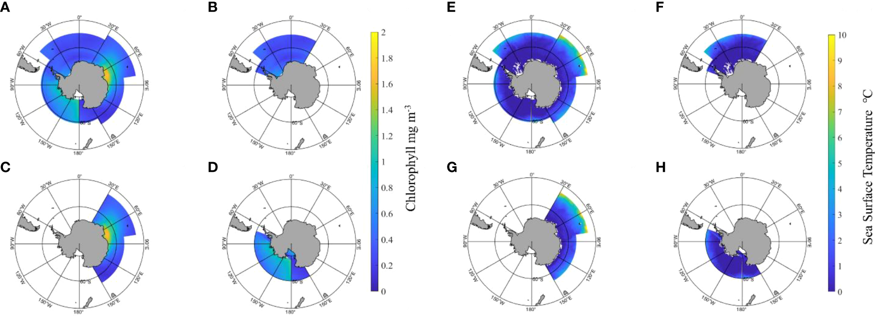 Zhu G. P. Feng C. L. Wu Q. Chen X. Z. Zhao X. Y. Xu L. X. et al . (2011). Spatial-temporal distribution of Euphausia superba in western southern Orkney islands and relation to sea surface temperature in austral summer fishing season. Mar. Environ. Sci.30 (5), 636–639. doi: 10.1111/j.1749-4877.2010.00232.x