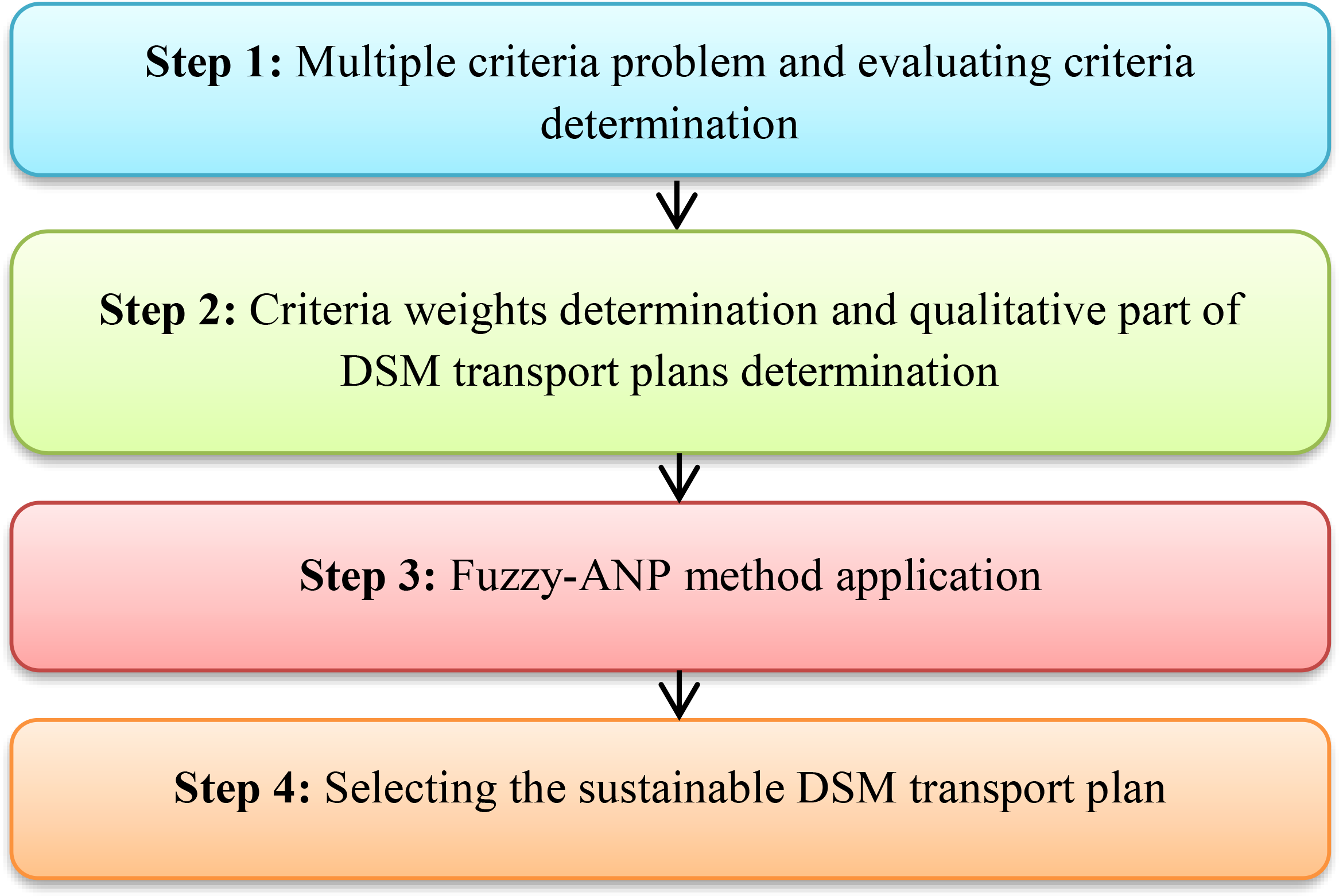 Application procedure of Fuzzy-ANP methodology in sustainable DSM transport plan selection.