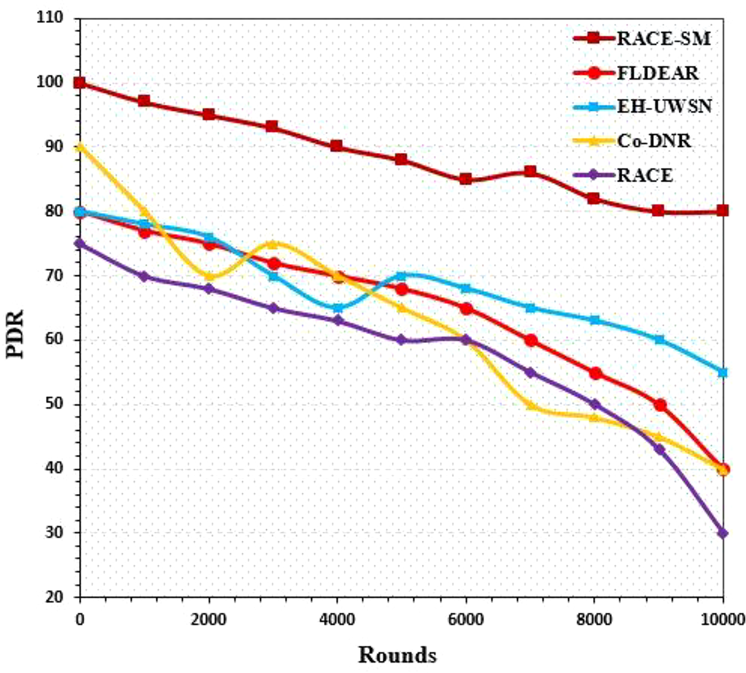 A reliable and energy-efficient routing scheme named Energy Balanced Efficient and Reliable Routing (EBER) has been proposed (Wadud et al., 2019). The author focuses on the forwarding nodes and nodes’ energy to reduce energy conservation. Moreover, the authors deployed two sink nodes to decrease network latency in areas with high traffic burdens. The simulation results show that the WDFAD-DBR performed better in PDR, energy usage, and lesser duplicate packets than the EBER 2 routing protocol.