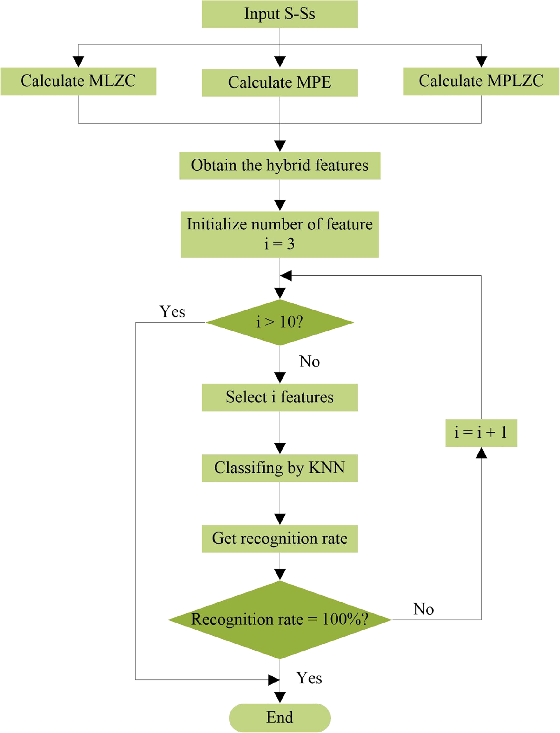 (5) Select i features of various S-Ss, and KNN classifier is used to classify S-Ss.