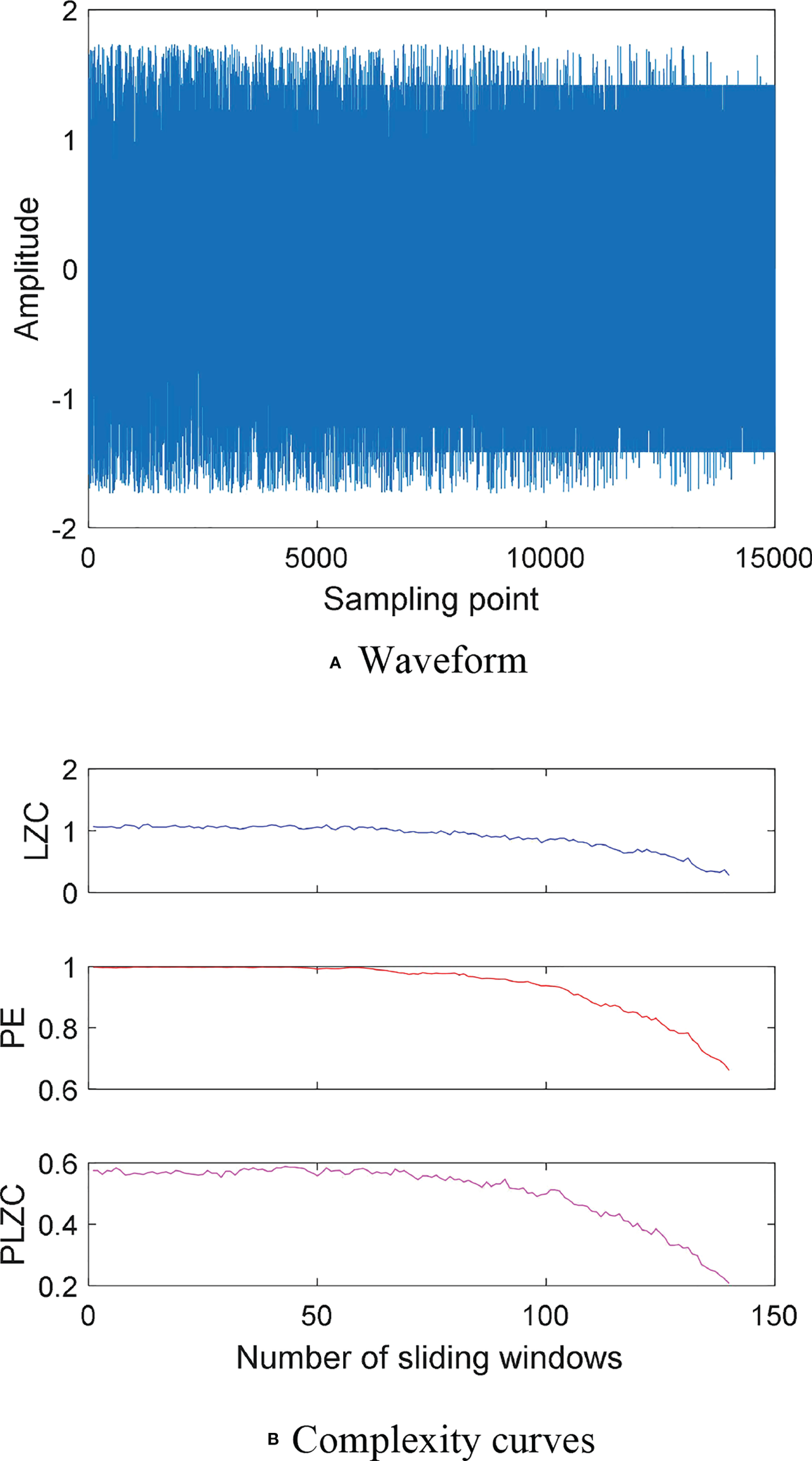 Waveform and complexity curves Mix signal: (A) Waveform; (B) Complexity curves.