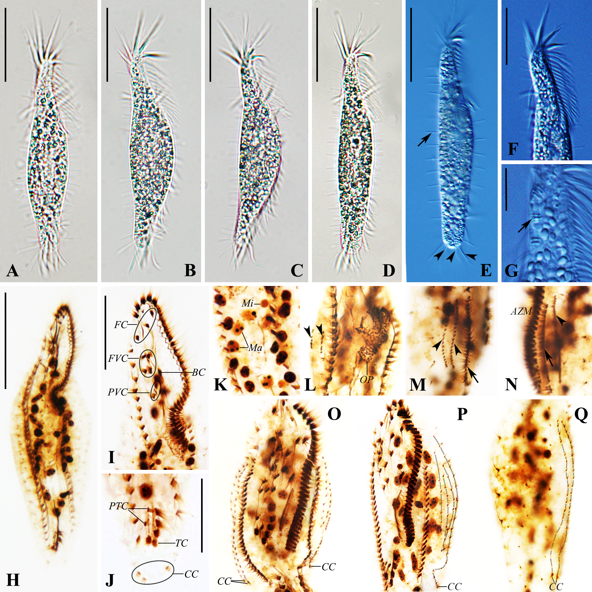 A protargol slide containing the holotype specimen (registration no. ZZH20210715-1) (see Figures 1F, G, 2N) and one paratype slide (registration no. ZZH20210715-2) have been deposited in the Laboratory of Protozoology, Shanghai Ocean University, China.