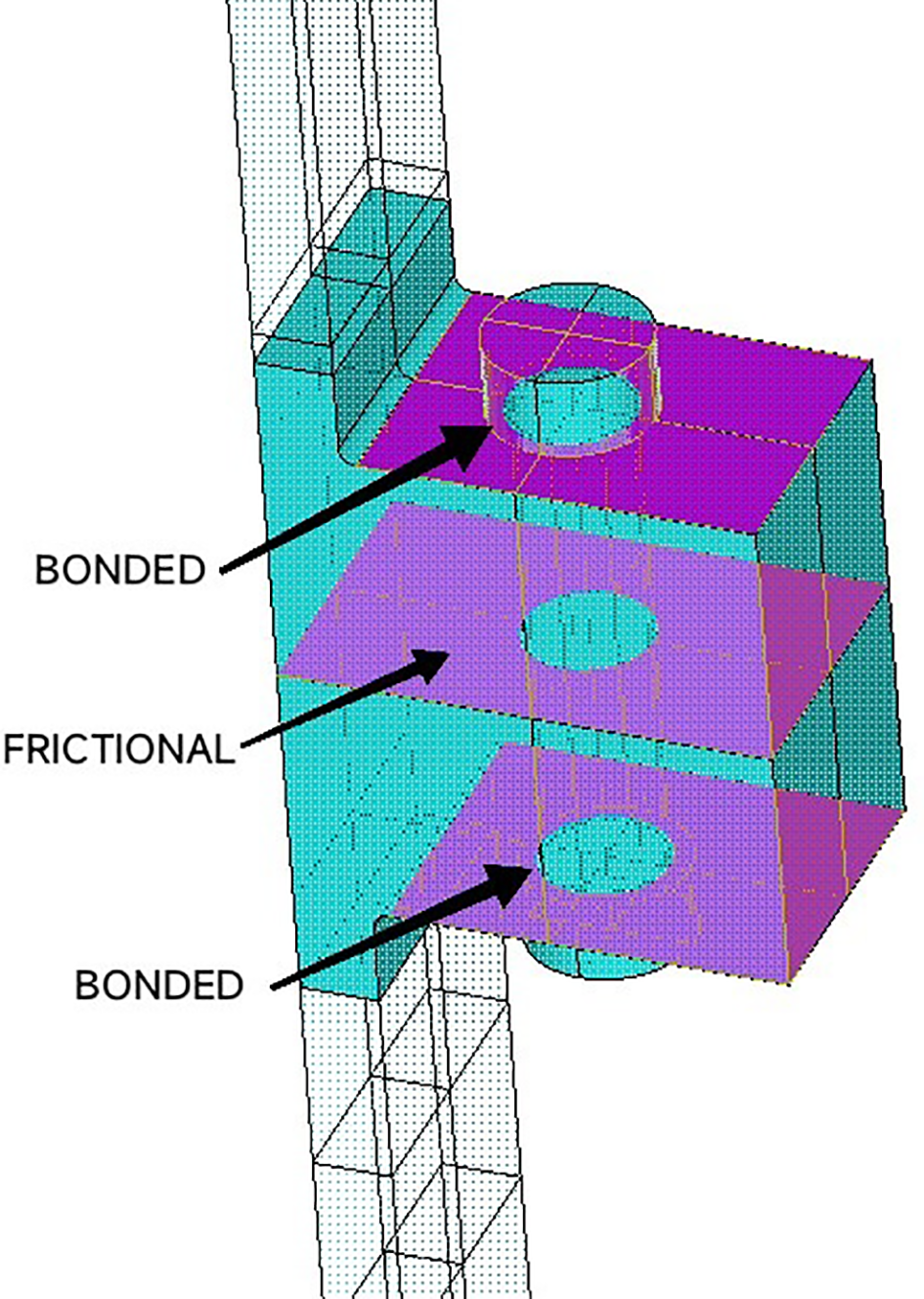 However, there are many uncertainties exist in the preloading forces during the installation stage. Attention should also be paid on the self-loosening effect, which will be further discussed in Section 7.2. The contact surface between the flange parts is set as frictional; and the contacts between the bolts and flanges are often defined as either frictional (Alonso-Martinez et al., 2019; Weijtjens et al., 2021) or bonded (Badrkhani Ajaei and Soyoz, 2020), see Figure 6. The frictional contacts are defined with frictional coefficients µ Ajaei and Soyoz recommended a value of the frictional coefficient between two flange parts as 0.45 according to DNV-OS-C101 (DNVGL (2016b)). Gorst et al. (Weijtjens et al., 2021) suggested µ=0.25 for contacts between washers and flange surfaces.