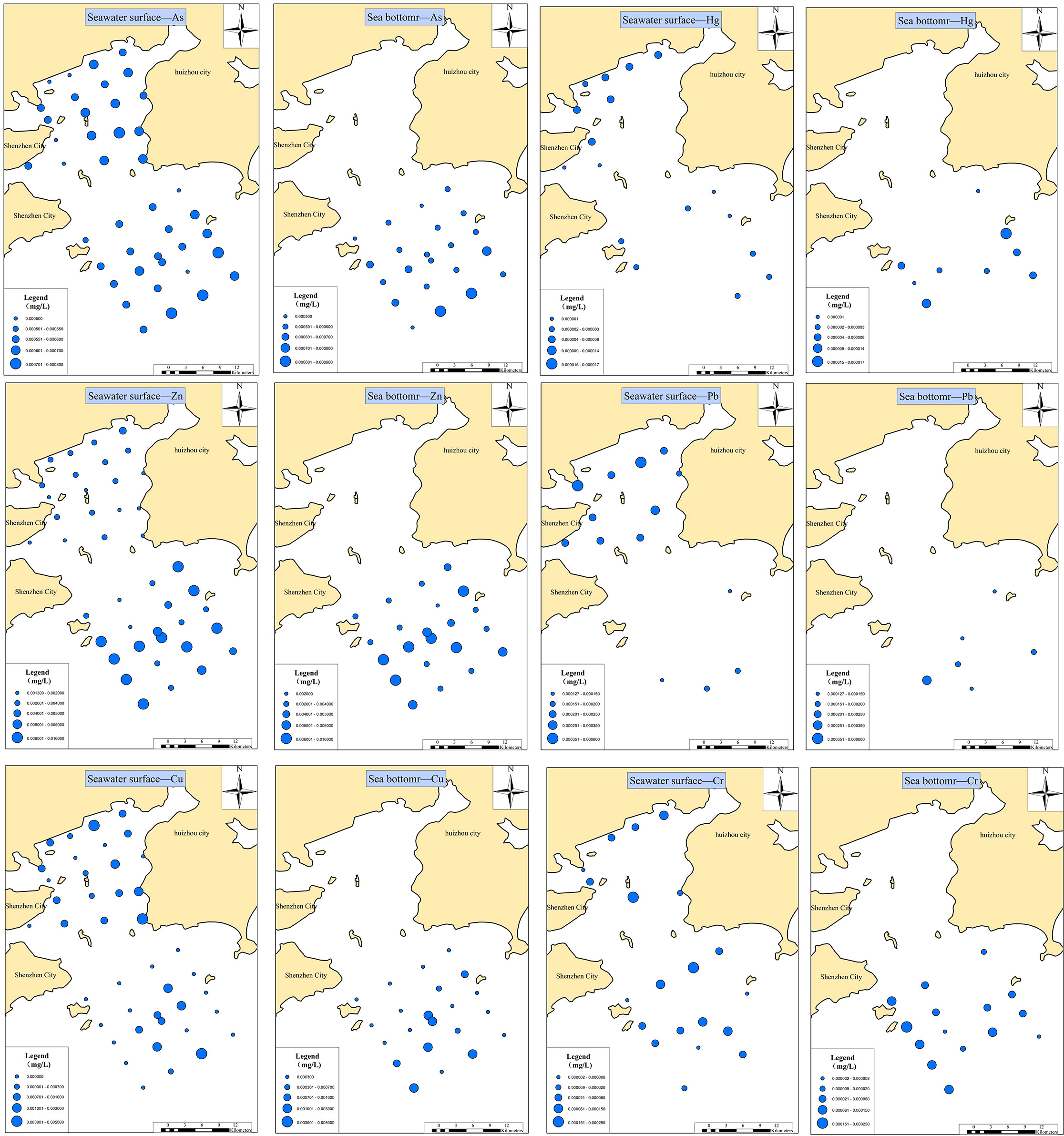 Concentration distribution of heavy metals in the seawater of Daya Bay.