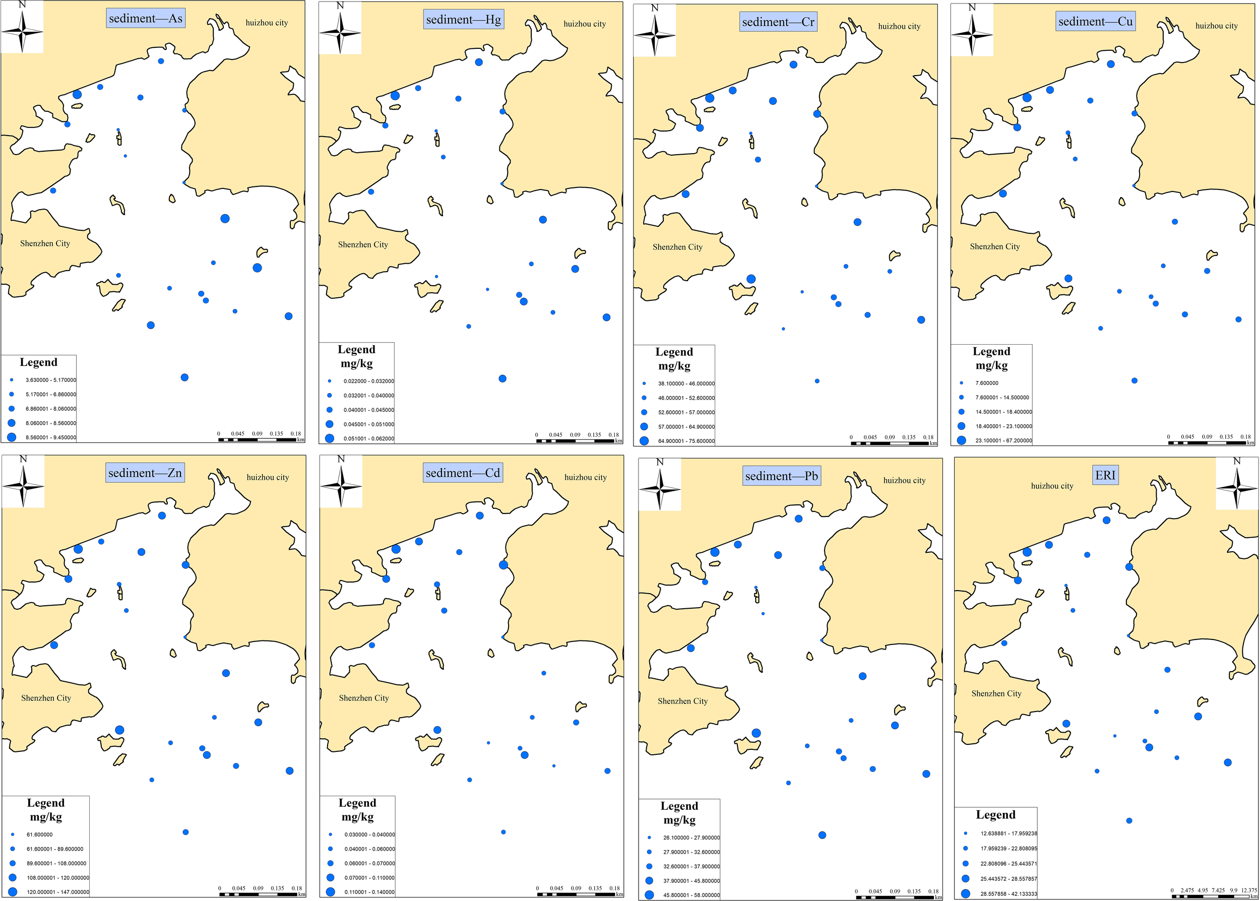 The combined potential ecological hazard index of heavy metals at a single station was the sum of the potential ecological hazard indices.