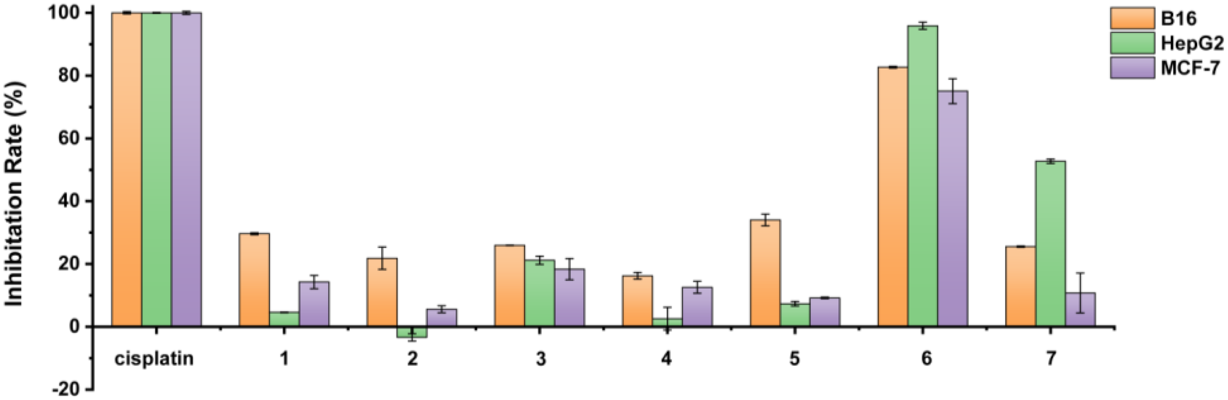 The ECD calculations were performed as described previously (Zhang et al., 2022). A conformational search was performed using Maestro 10.2 (Ji and Xu, 2021). The conformers were then optimized using the density functional theory method at the B3LYP/6-311G(2d,p) level by the software package Gaussian 09 (Frisch et al., 2013). The 60 lowest energy conformations were calculated by the ECD calculations using the time-dependent density functional theory (TDDFT) methodology at the CAM-B3LYP/6-311G(d,p) level.