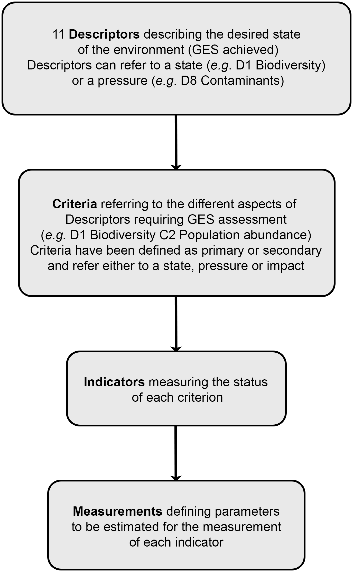 Primary MSFD criteria directly contribute to the assessment of good environmental status, while secondary criteria are only used in situation of concern raised from the assessment of primary criteria.