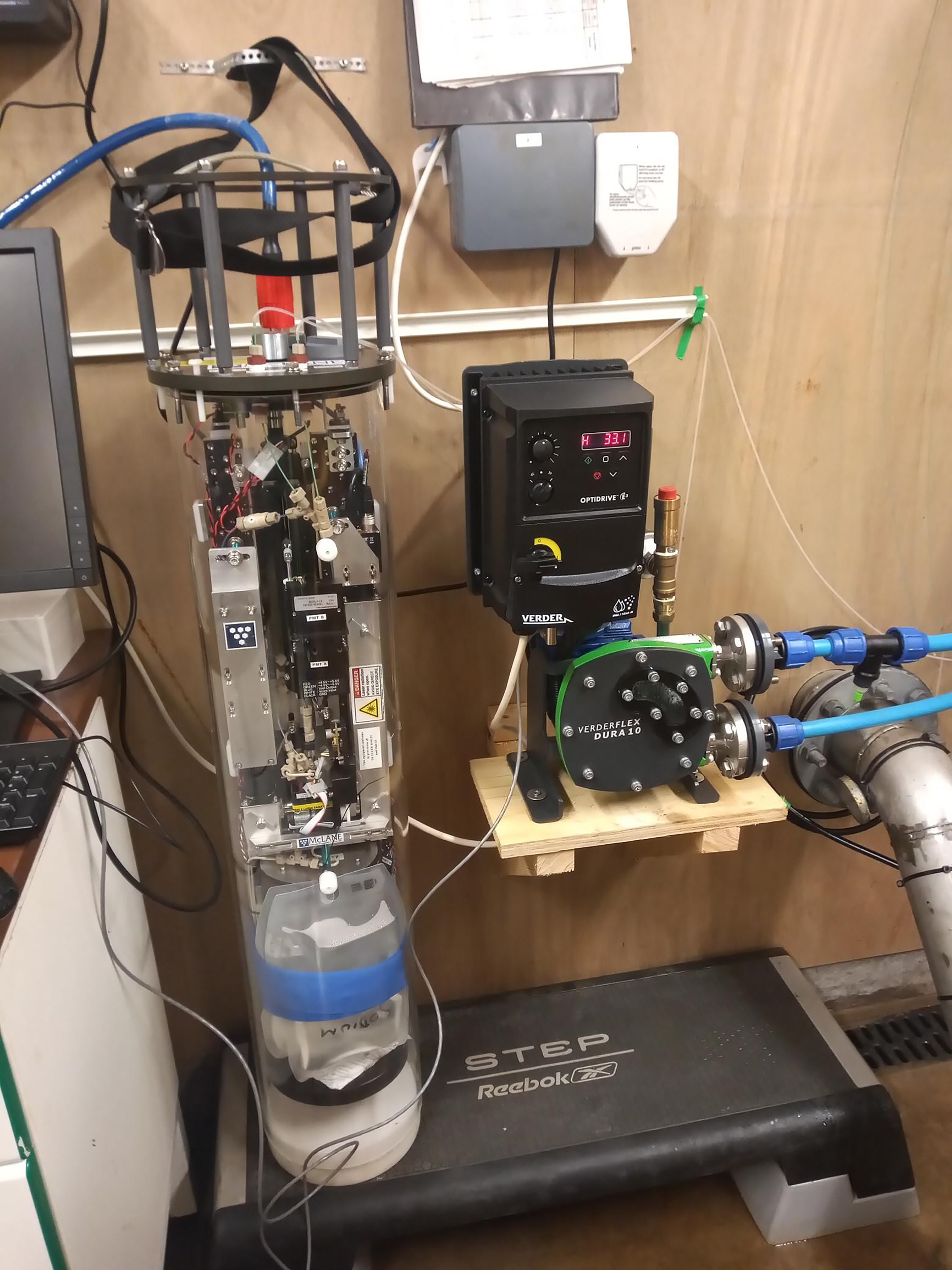 FlowCytoBot (IFCB) deployed in Scalloway in the Shetland Islands during PRIMROSE. The IFCB is land based with seawater being continuously pumped from an adjacent bay.