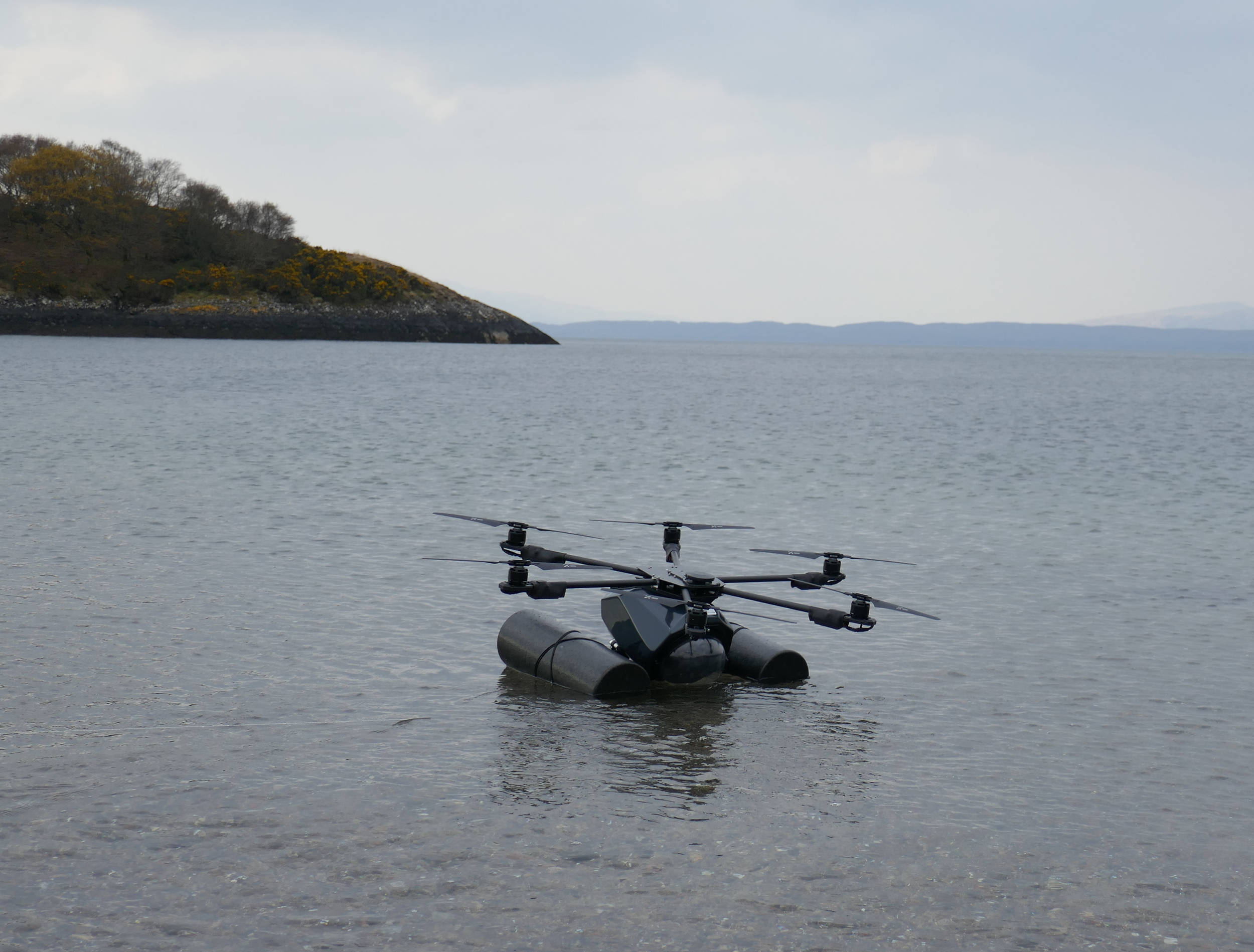 TD7 water-landable UAV under trial on a near calm and sheltered embayment at Dunstaffnage Peninsula, Argyll, Scotland.