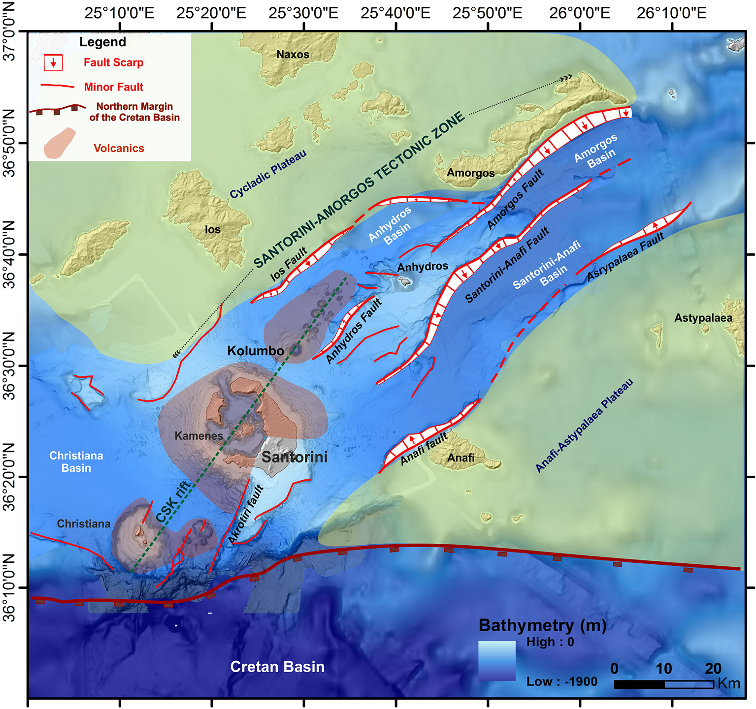 Nomikou P., Hübscher C., Carey S. (2019). The Christiana–Santorini–Kolumbo Volcanic Field. Elements; 15 (3), 171–176. doi: 10.2138/gselements.15.3.171
