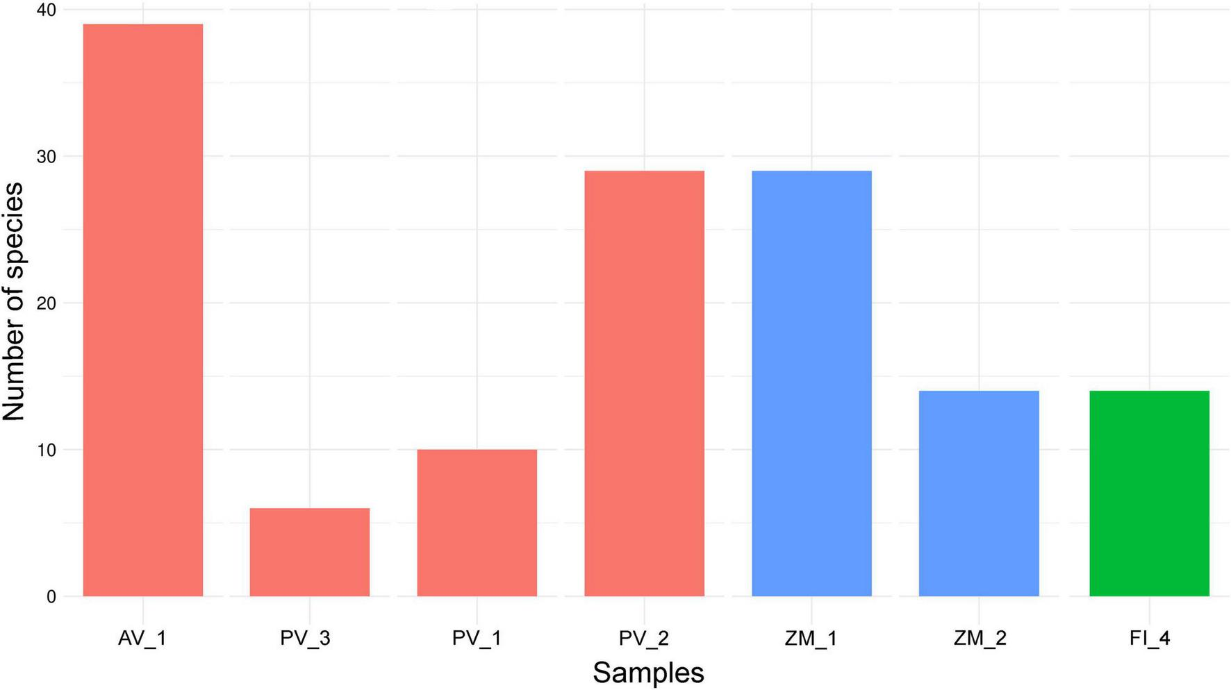 Based on our limited sampling, we observed a heterogeneous number of fungal ASVs across ecosystems, with the highest richness values in the high-temperature vent system of Alarcón Rise (AV_1); whereas the lowest values corresponded to the Pescadero Transform Fault (PV_3; Figure 5). Overall, our results hint that high-temperature vent systems represent the richest ecosystem for fungi (highest number of ASVs) followed by OMZ, which should be confirmed in further studies.