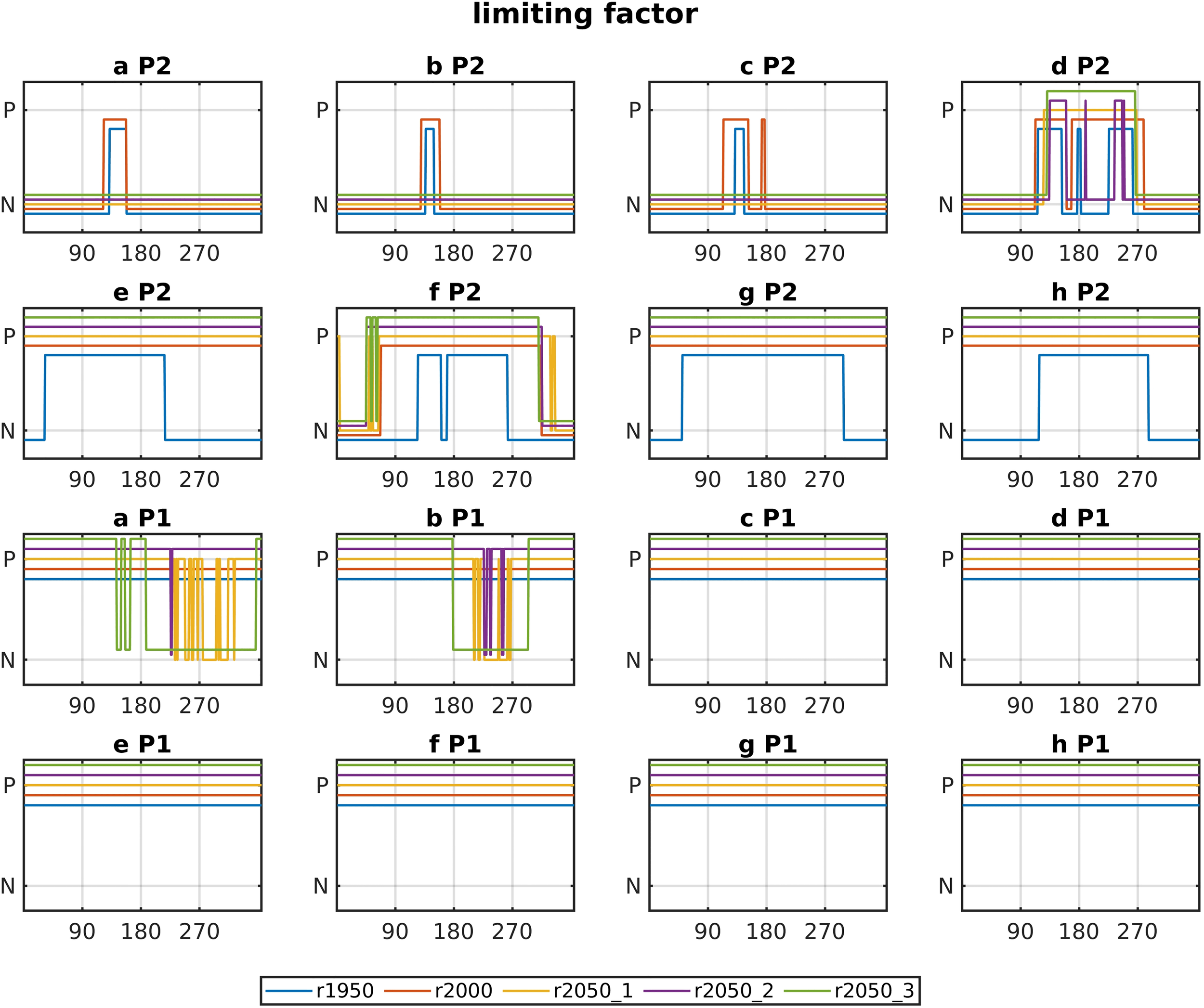 A prediction of the future North Sea light climate has—to our knowledge—never been attempted with a numerical model. We thus had very little experience or previous research to rely or build on. A set of runs was performed using climatological monthly means of satellite-derived SPM (IFREMER, 2017) from the years 1998 to 2017 and, in the case of the runs that start in the year 2050, using the same river forcing as in that starting in 2000. The only variant factor in downwelling attenuation in these runs thus is that which is due to phytoplankton. Going forward, we will refer to these five runs as base runs. They are referred to as r1950, r2000, r2050_1 (RCP2.6-SSP1), r2050_2 (RCP4.5-SSP2) and r2050_3 (RCP8.5-SSP5). They serve the purpose of a control and reference to the SPM increase experiment. All runs have the same duration of 5 years. As described above, all initial conditions were spun up by applying the forcing of the first year five times before the actual run.