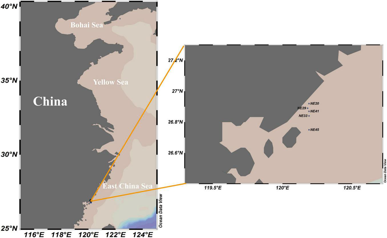 As introduced above, P. donghaiense is widely distributed in estuaries and coasts around the world across Asia, Oceania, America, and Europe (Chang, 1988; Lu and Goebel, 2001; Gómez, 2003; Gómez and Boicenco, 2004; Scorzetti et al., 2009; Ajani et al., 2011; Percopo et al., 2011; Takano and Matsuoka, 2011; Muciño-Márquez et al., 2015; Rezende et al., 2015; Shin et al., 2019b). In China, P. donghaiense has been reported in the Bohai Sea since 1970s (recorded as P. dentatum or P. donghaiense) (Song et al., 2016), the Yellow Sea (recorded as P. dentatum) (Liu et al., 2015; Zhang et al., 2016), the South China Sea since 1980s (Hong Kong, also recorded as P. dentatum) (Law, 2018), and the East China Sea since 1990s (recorded as P. dentatum or P. donghaiense) (Lu and Goebel, 2001; Lu et al., 2014). Especially in the East China Sea, the species formed blooms with different scales almost every year during the last three decades, which caused serious impacts on fisheries, public health, and aquatic ecosystems (Lin et al., 2014; Lu et al., 2014). Therefore, mapping the spatial distribution of the resting cysts of this species in the sediments of China Seas will strengthen our understanding of its ecology and provide valuable information for assessing the risk associated with P. donghaiense booms.