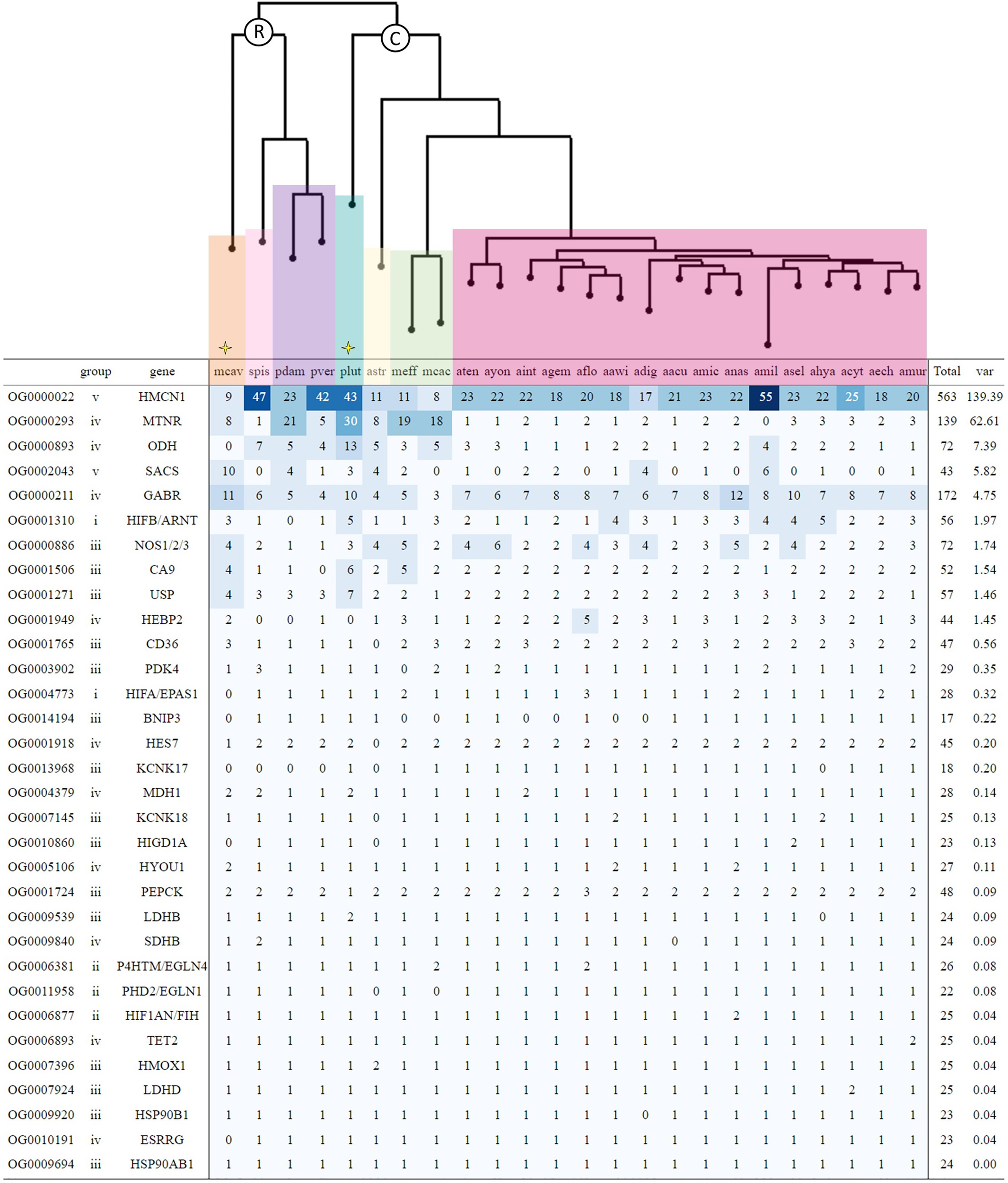4.2 Orthogroups of Hypoxia-Associated Genes Exhibiting Stark Differences Between Species