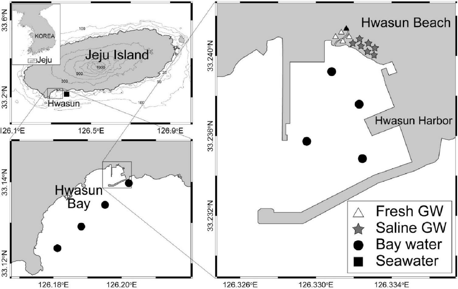 Hwang D. Lee Y.-W. Kim G. (2005). Large submarine groundwater discharge and benthic eutrophication in Bangdu Bay on volcanic Jeju Island, Korea.Limnol. Oceanogr.501393–1403. 10.4319/lo.2005.50.5.1393