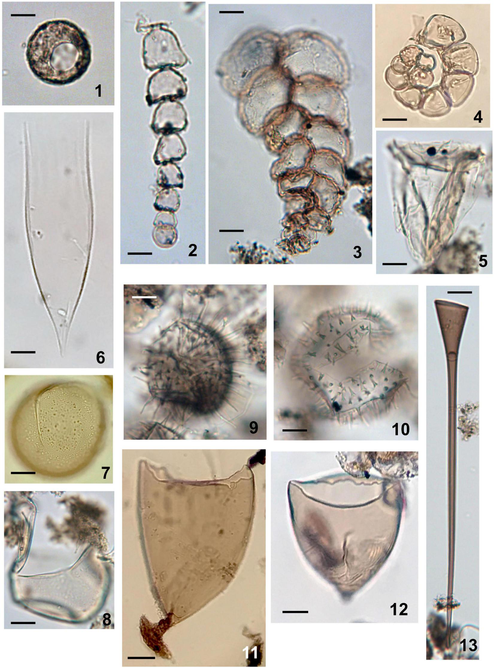| Euglenophyta | mainly freshwater | planktonic | photosynthetic | loricate | Trachelomonas | Shumilovskikh et al., 2019 | |