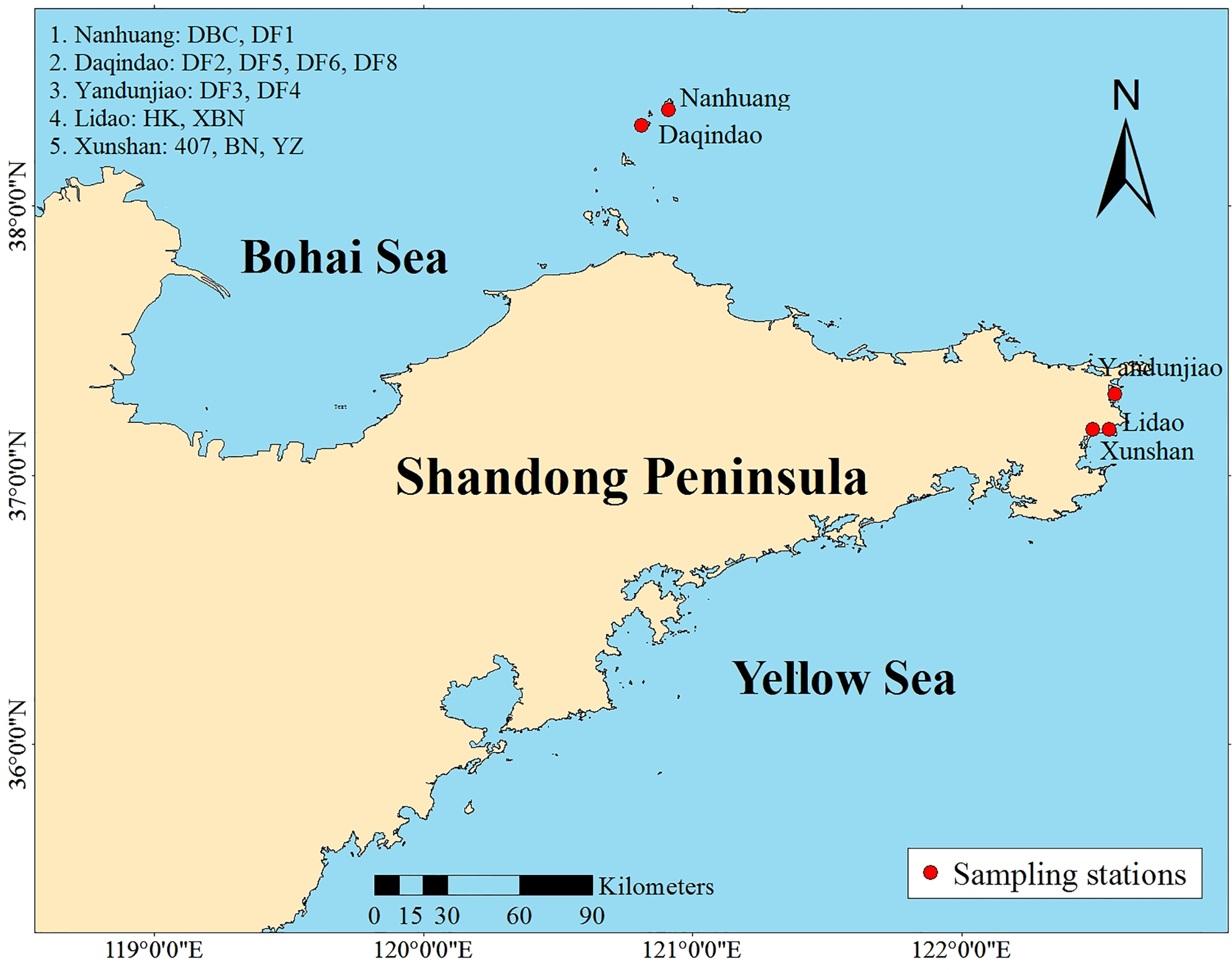 Location of the Saccharina cultivars around the Shandong Peninsula.