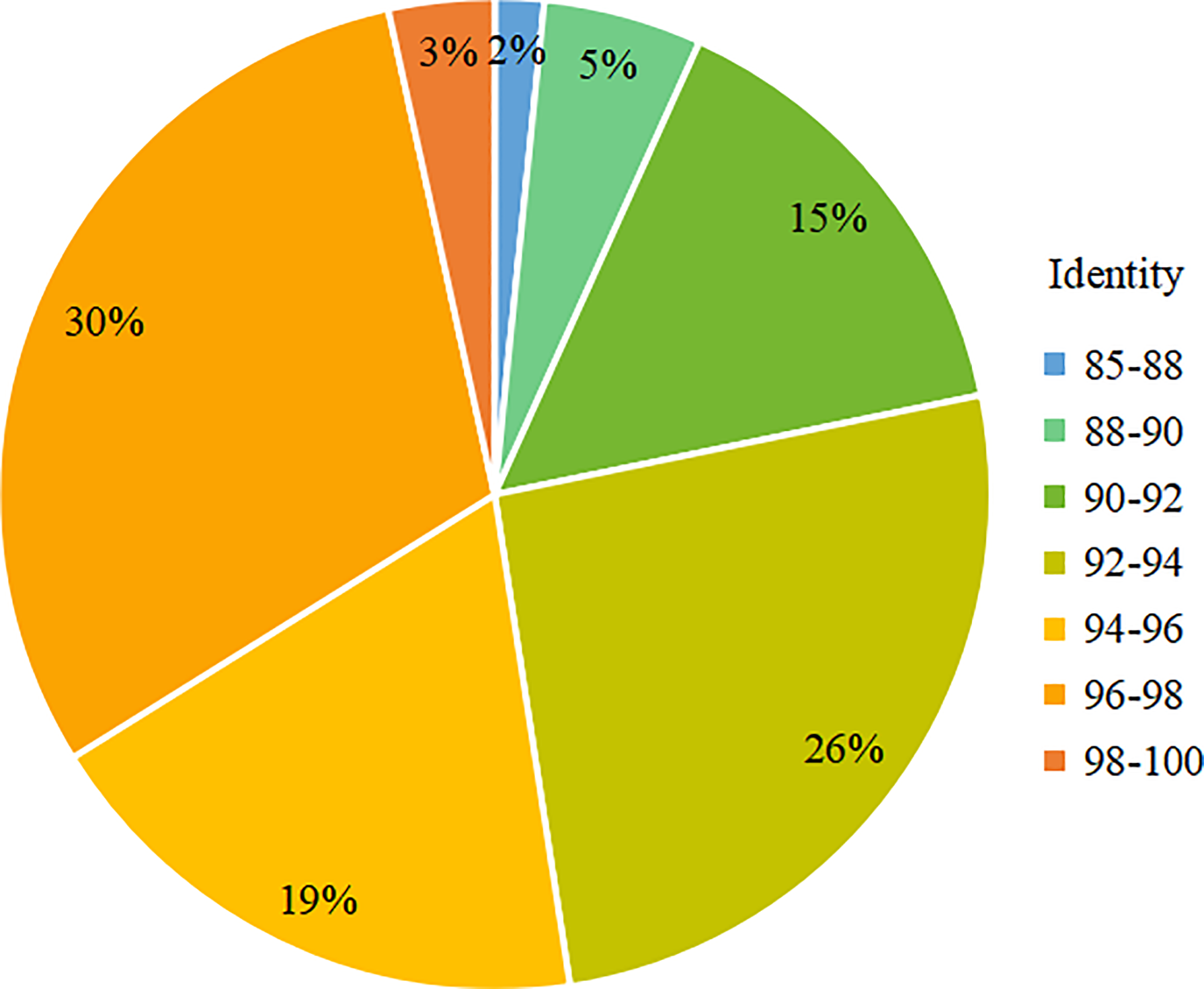 To further verify the reliability of the developed molecular markers, the amplified products of the field samples (S30 and ZN1-3) were sequenced using high-throughput Illumina sequencing using the Novaseq 6000 system with 250 bp paired-end reads. The target DNA fragments were purified by quick DNA extraction using a SteadyPure PCR DNA Purification Kit AG21003 (AG, China), and the purified PCR products of each sample were quantified using a Qubit 4 fluorometer (Thermo, USA). Four sequencing libraries (two samples, two primer pairs) were constructed using the VAHTS Universal DNA Library Prep Kit for IlluminaV3 (ND607) and VAHTSTM DNA Adapters set1 (N801). Paired-end raw reads were preprocessed to generate high-quality clean reads by using fastp software (Version 0.20.1), including removal of barcode and adapter sequences, reads less than 200 bp, and low-quality filtering. Cleaned reads were assembled to generate high-quality tags (Tag refers to a contig of an F read and the associated R read, with the length around 440-450bp) using QIIME2 (Version 2021.4).