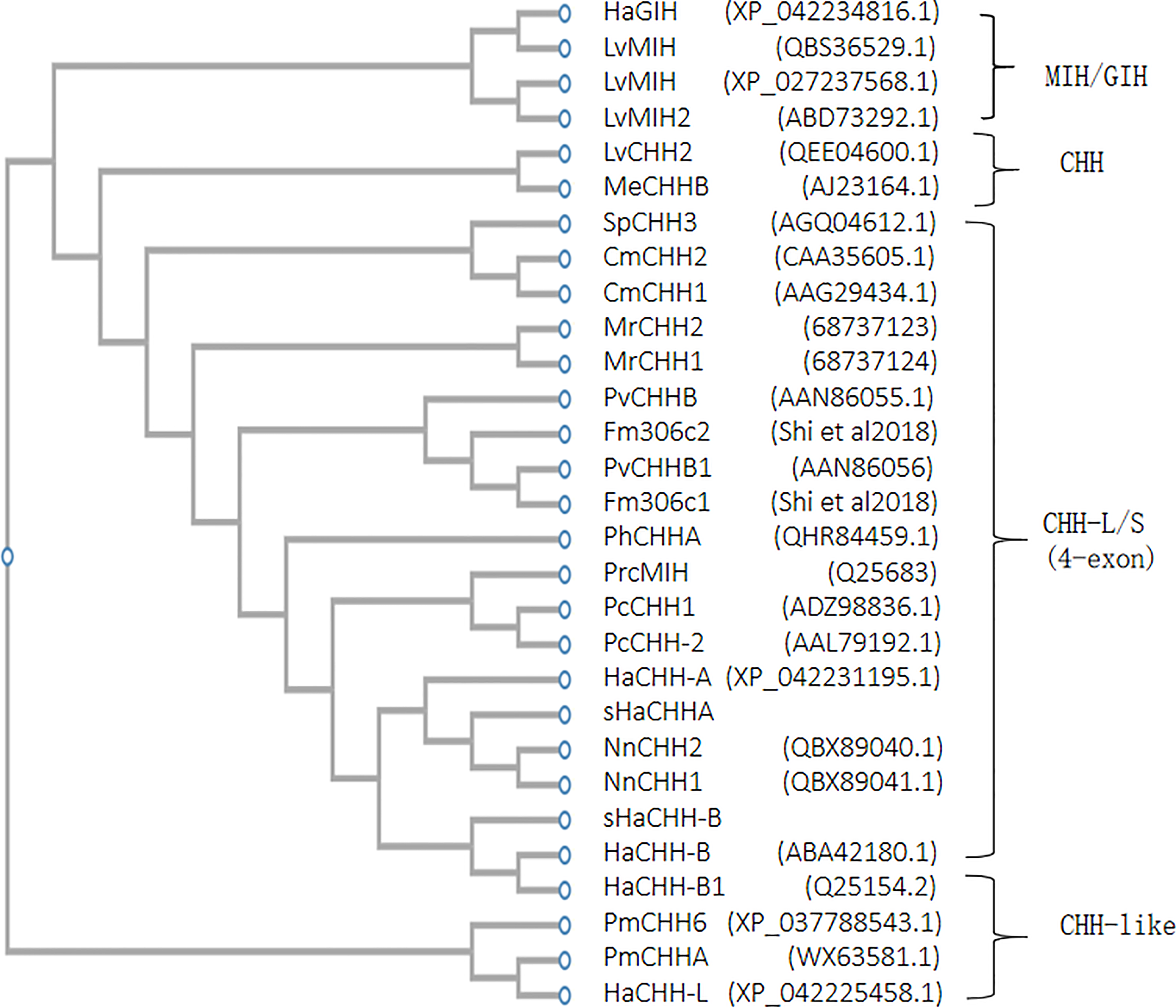 3. The expression patterns of the newly reported sHaCHH-A and sHaCHH-B suggested that they may have a reproductive stage-related function in the biannual reproductive cycle of females.