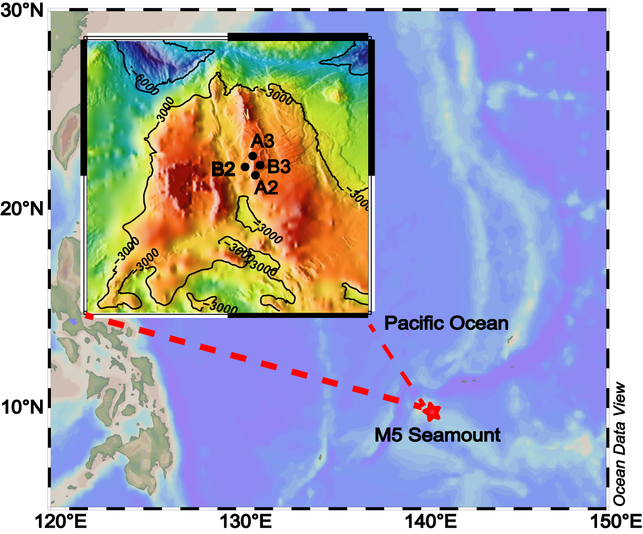 Sampling stations of the M5 seamount in the Western Pacific Ocean.