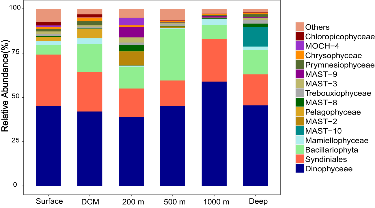 The composition of phytoplankton communities in different depths of the M5 seamount at the phylum level.