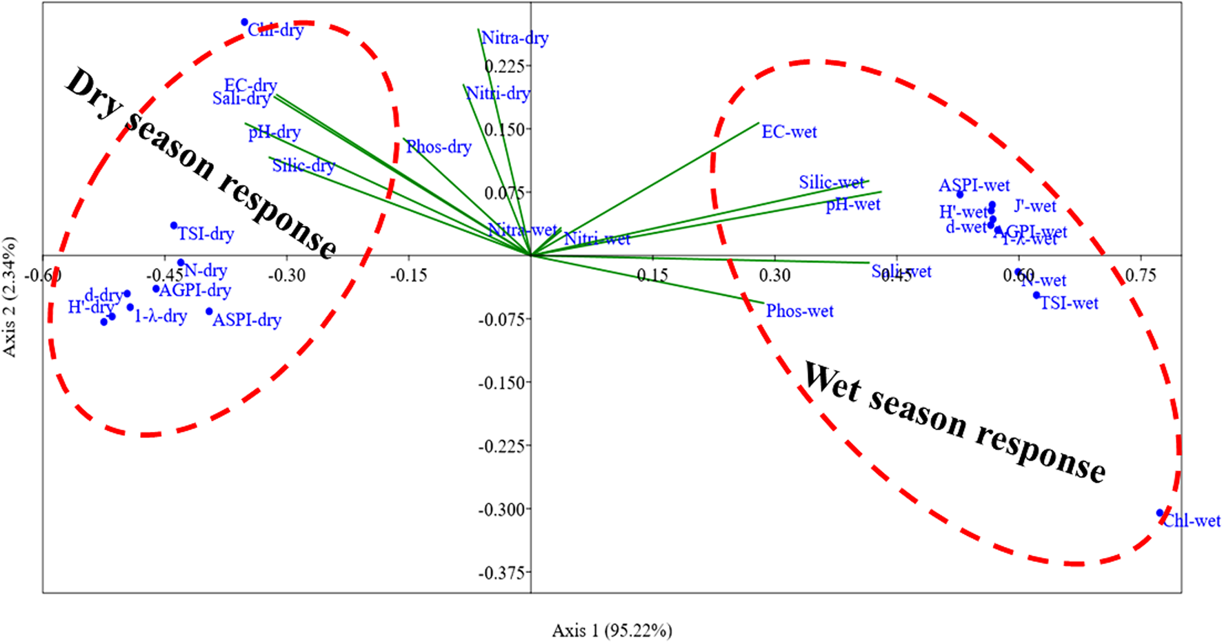 | Wet season | 7.96±0.33 | 30.09±2.45 | 3745±1966.2 | 14.67±5.96 | 12.67±7.54 | 59.26±41.23 | 0.13±0.46 | 0.11±0.37 | 0.46±0.69 | 2.25±0.37 | 1.8±2.79 | 47.96±12.99 | 25.11±11.17 | 23.82±6.54 | 16.57±6.36 |