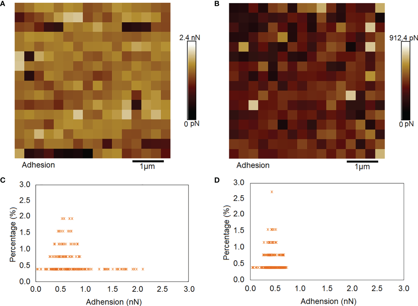| Adhesion (nN) | Range | 0.03-2.11 | 0.04-0.71 |