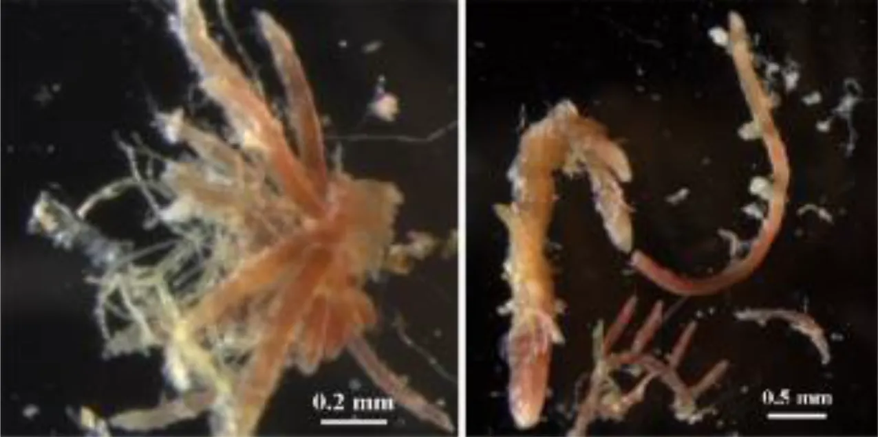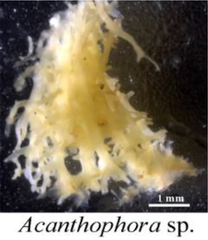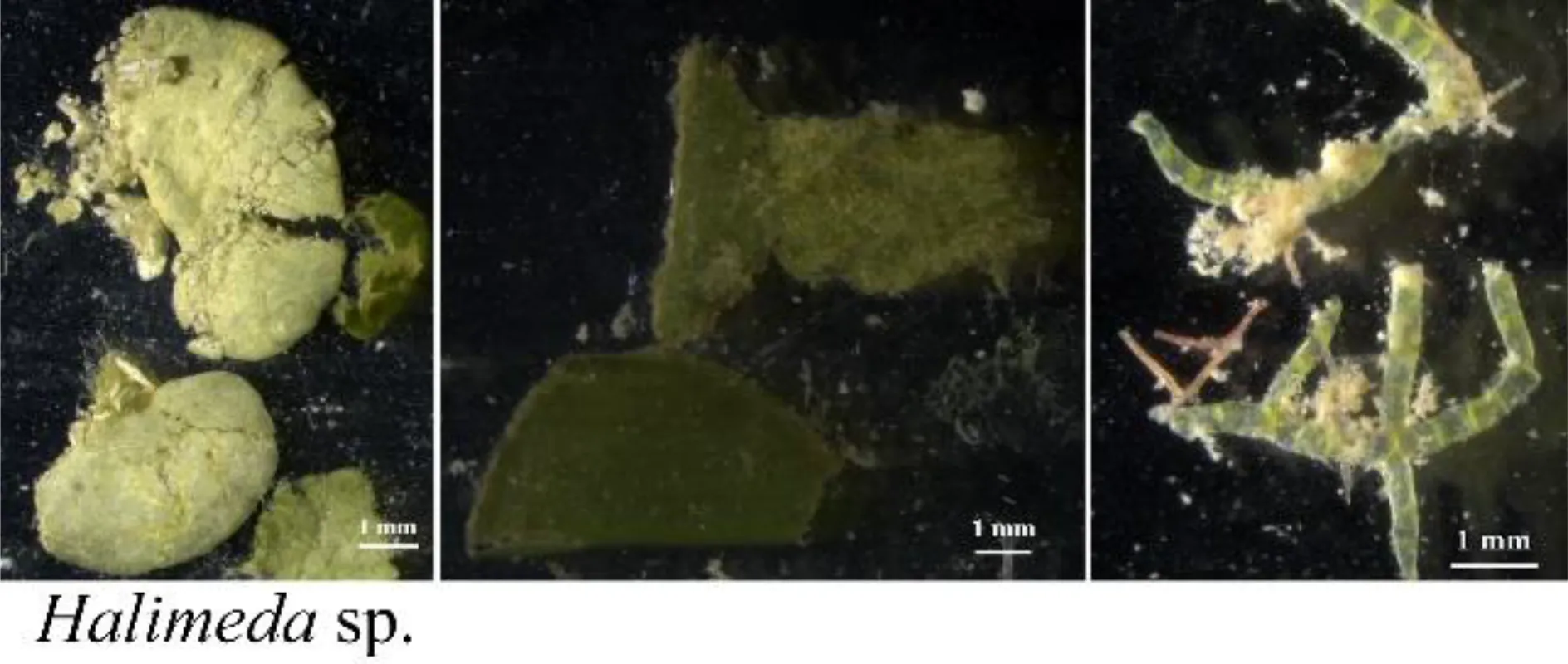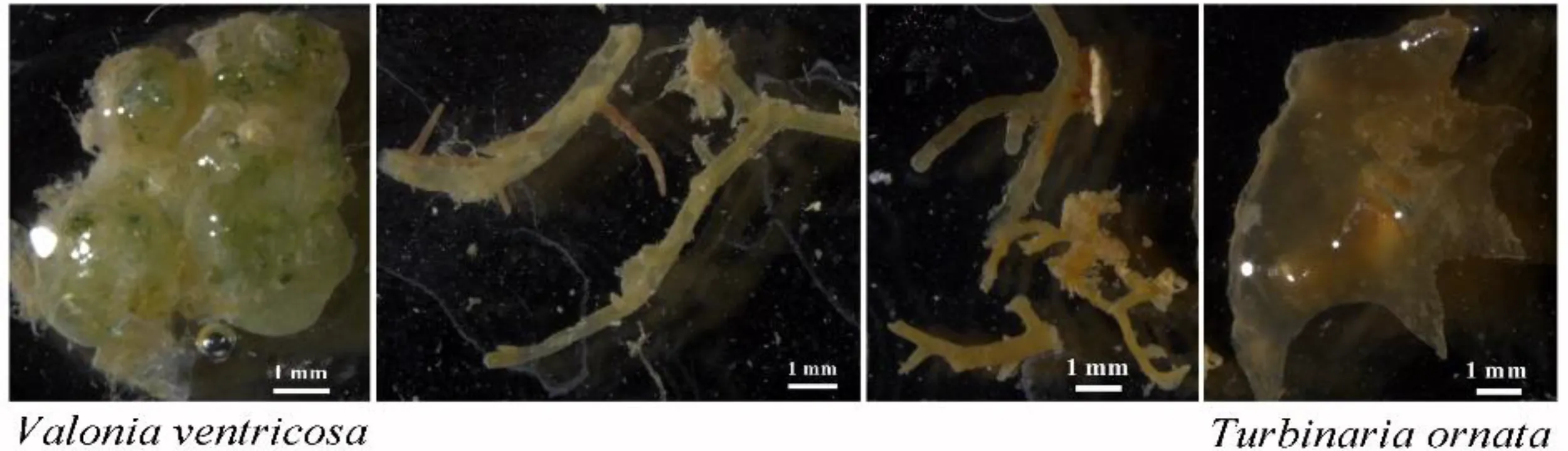 Macrophyte fragments observed by microscopic examination in the intestinal contents of fishes from the Xisha coral reefs.