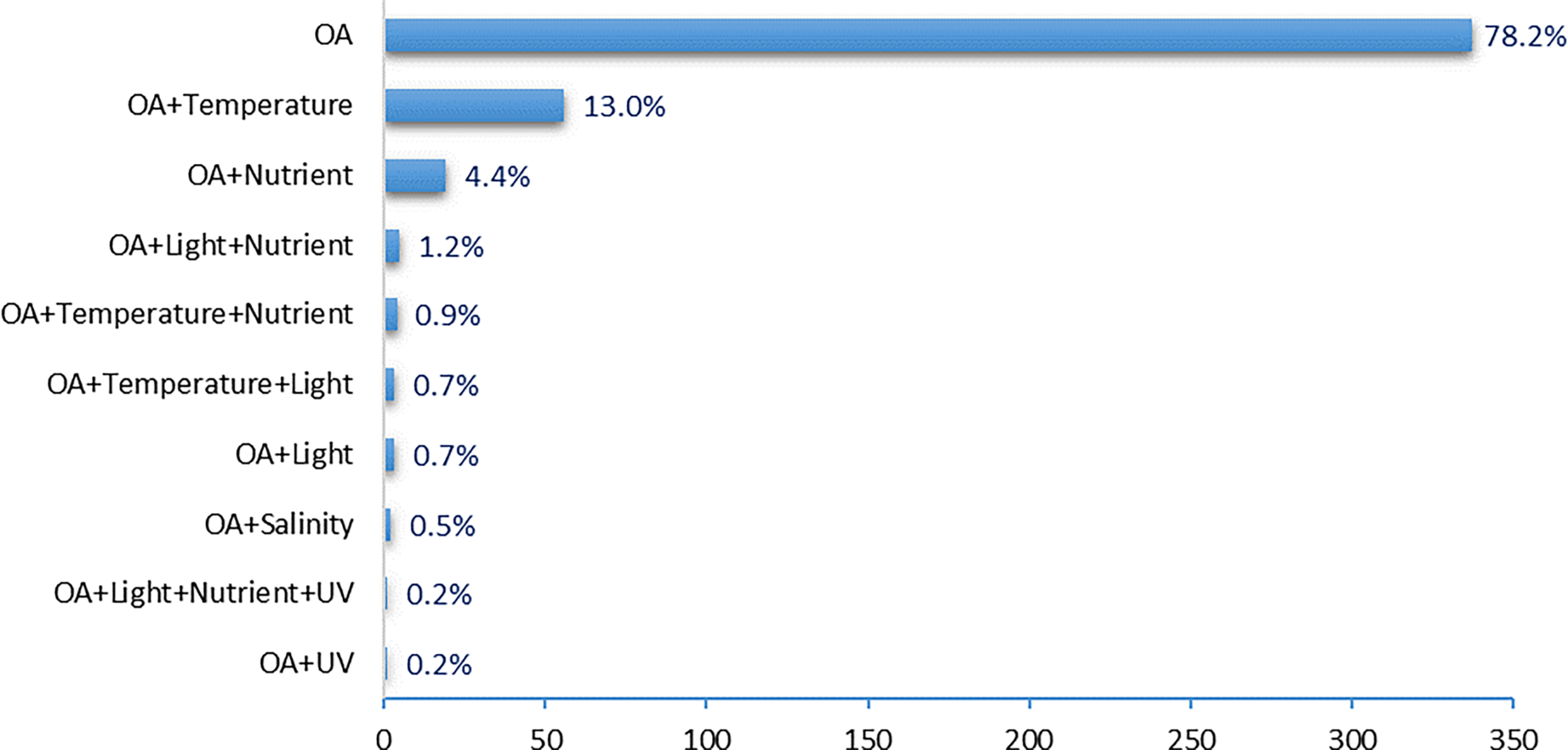 These results also reflect the community’s perception (Table S6), since in addition to controlling pH/CO2, the main factors manipulated during multi-stressors experiments are temperature (81%), oxygen (42%), salinity (38.5%) and light (35%), while pathogens and bioturbation are almost not considered.