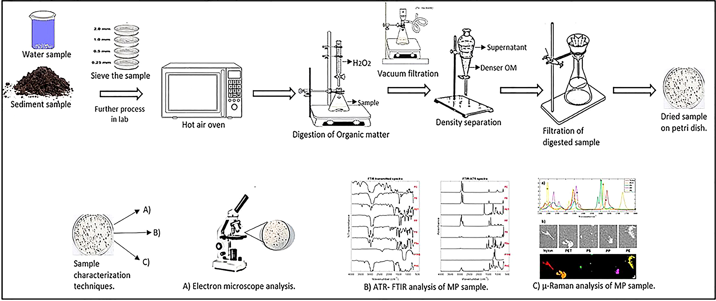 Although there are several techniques and methods present to analyze MPs, a lack of standardized and uniform protocol makes it difficult to monitor MP samples of various sizes and types. Sascha et al. reported size ranges of MPs according to the sampling methods assumed in field studies (Sascha et al., 2018; Thomas et al., 2020).