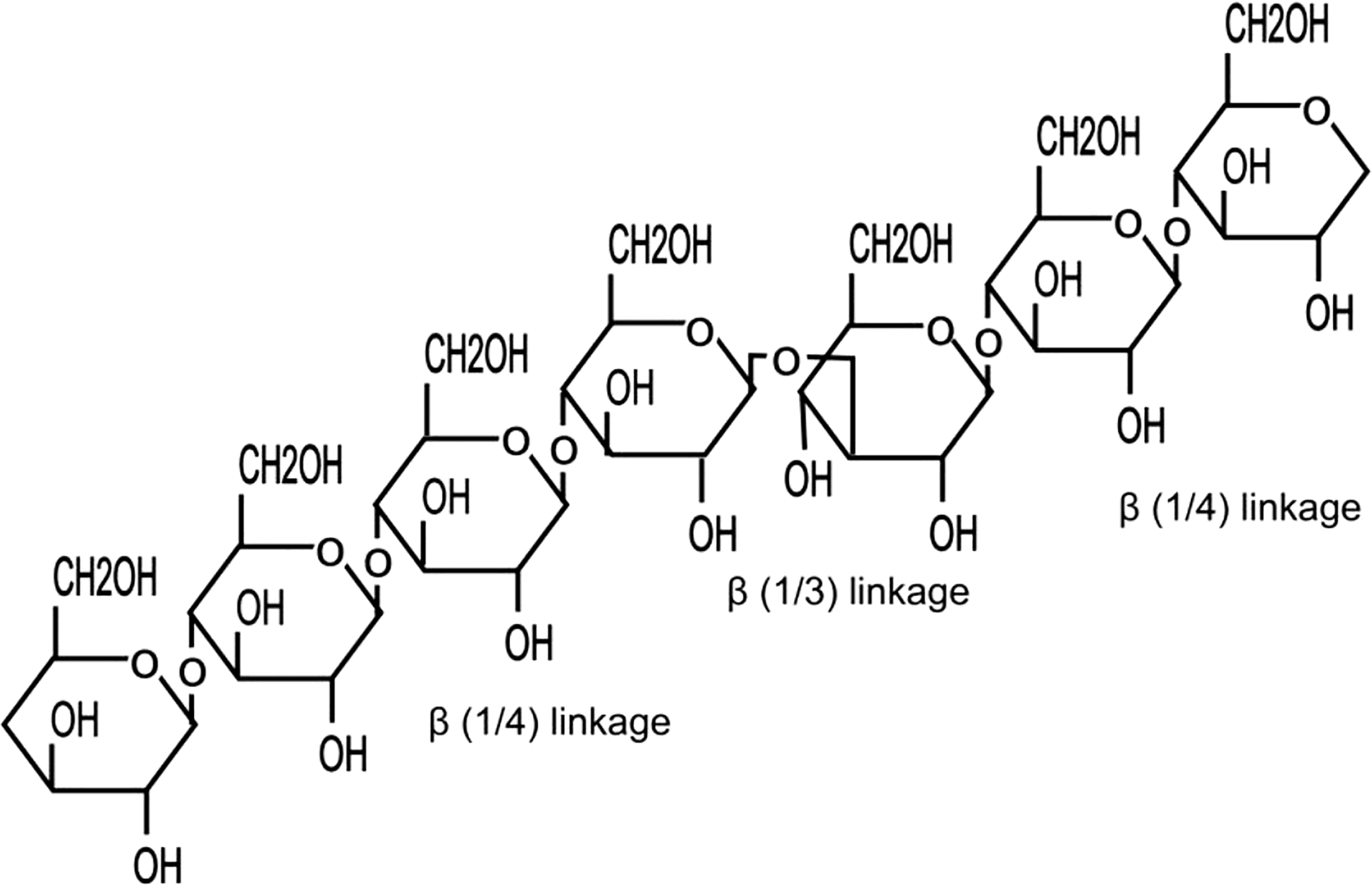 Molecular structure of a typical cereal β-glucan.