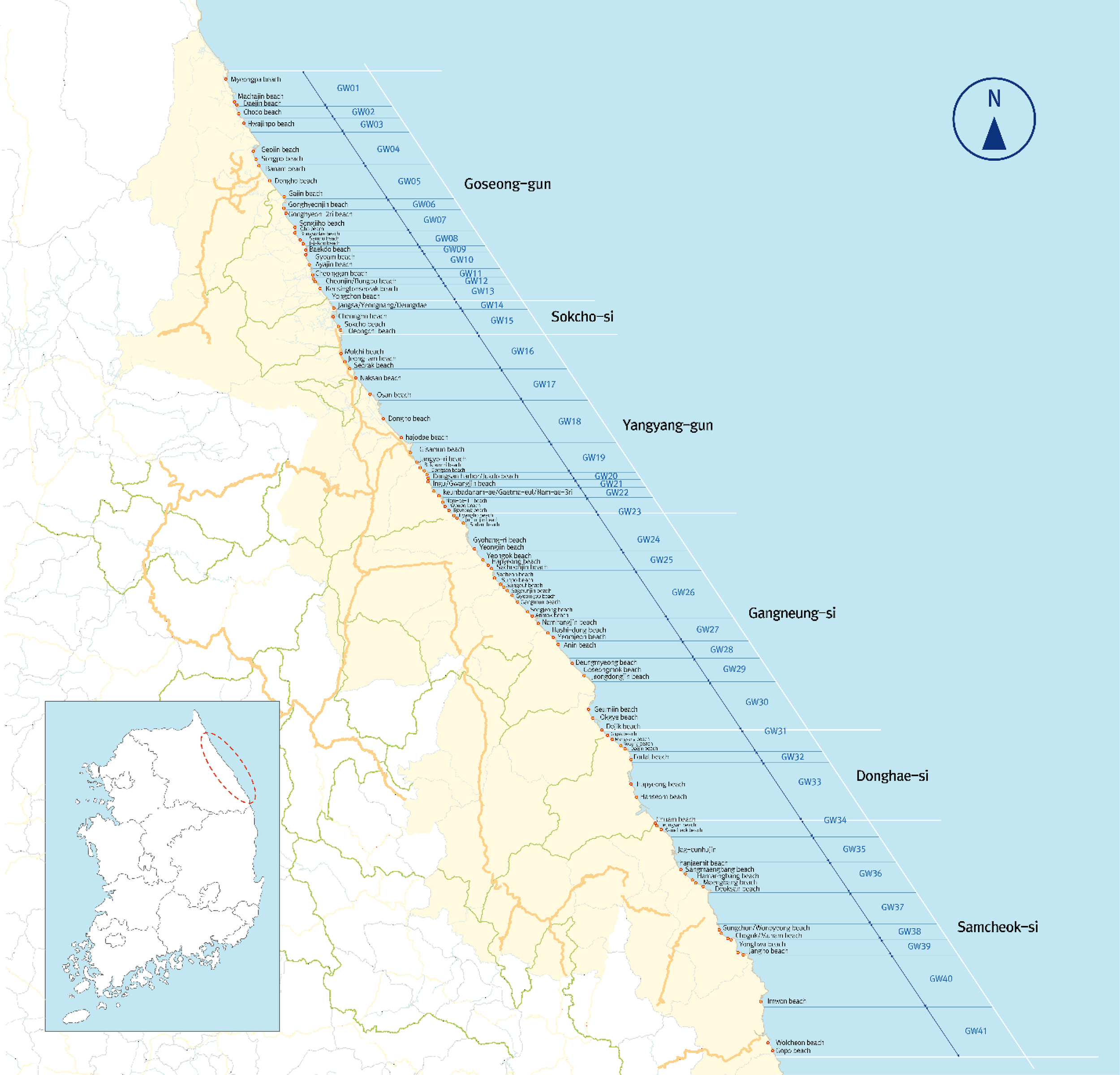 Table 2 Basic information of littoral cells in Gangwon-do (The province of Gangwon, 2020).