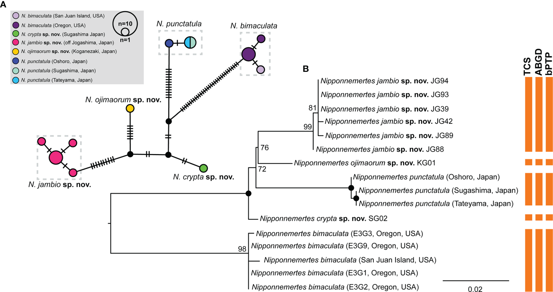 From the Northwest Pacific in eastern Asia, including the Sea of Okhotsk, the Sea of Japan, and the East and South China Seas, four species of Nipponnemertes have been recorded: Nipponnemertes arenaria (Ushakov, 1927), N. bimaculata, N. ogumai, and N. punctatula (Kajihara, 2007; Kajihara, 2017; Chernyshev, 2020). Besides, several authors reported unidentified forms of Nipponnemertes from Japanese (Yamaoka, 2005; Kajihara, 2017), Vietnamese (Chernyshev, 2016), and Far East Russian waters (Chernyshev, 2020), suggesting there is hidden nemertean diversity.