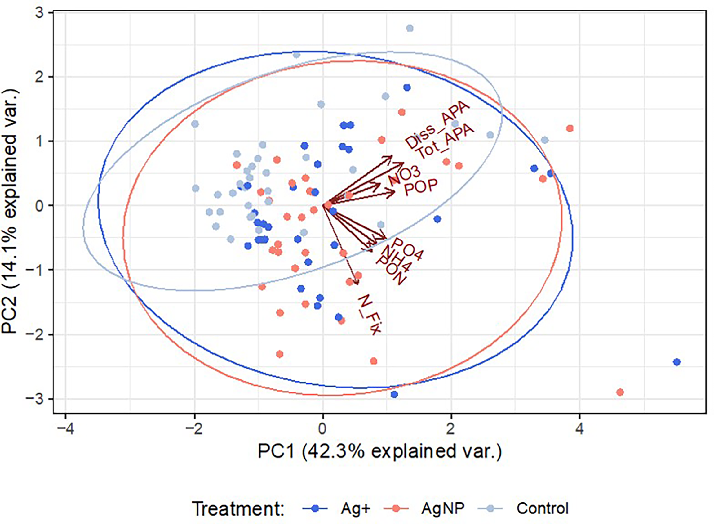 Principal Component Analysis (PCA) was performed to explore the association between nitrogen fixation rates, nutrient concentrations and APA. 56.4% of the total variance in the dataset were explained by components 1 and 2 (Figure 8).