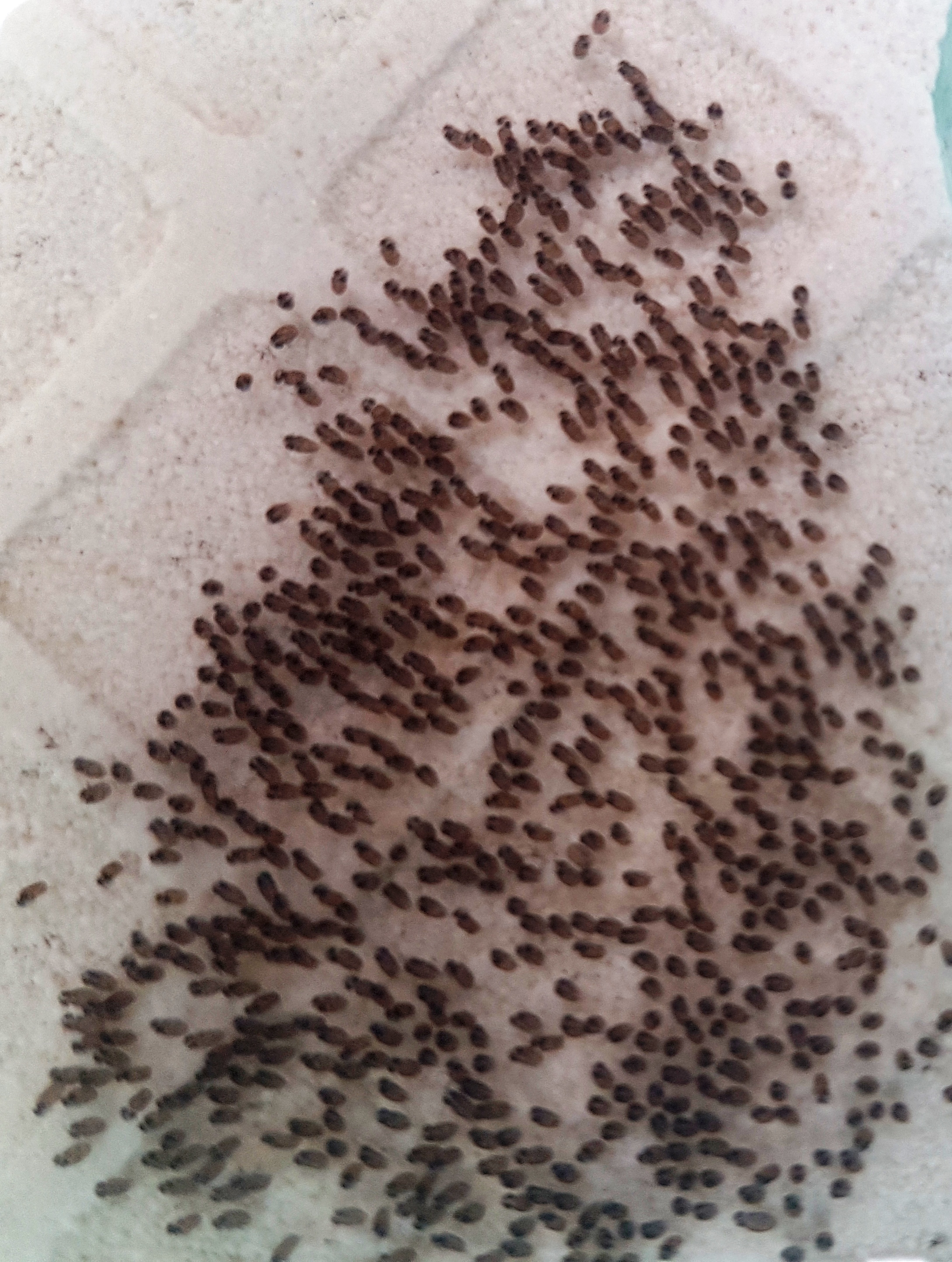 The eggs laid on the substratum were transferred carefully to hatching tanks on the day of hatching without taking the tile out of water. The hatching occurred in the evening hours after sunset. The ceramic tiles with the eggs were kept for hatching with mild aeration near the eggs.
