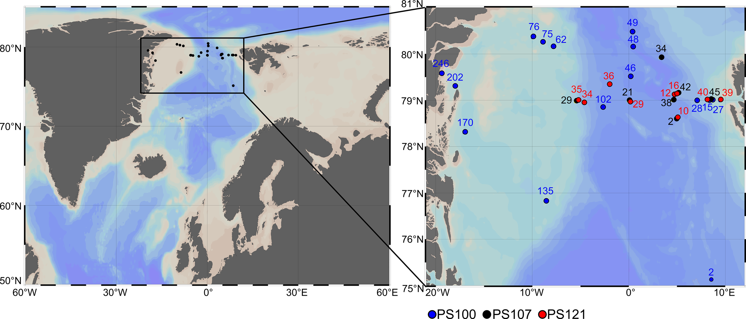 Schewe I. (2018). “The expedition PS107 of the research vessel POLARSTERN to the Fram Strait and the AWI-HAUSGARTEN in 2017” in Rep. Polar Mar. Res.717, 120. doi: 10.2312/BzPM_0717_2018