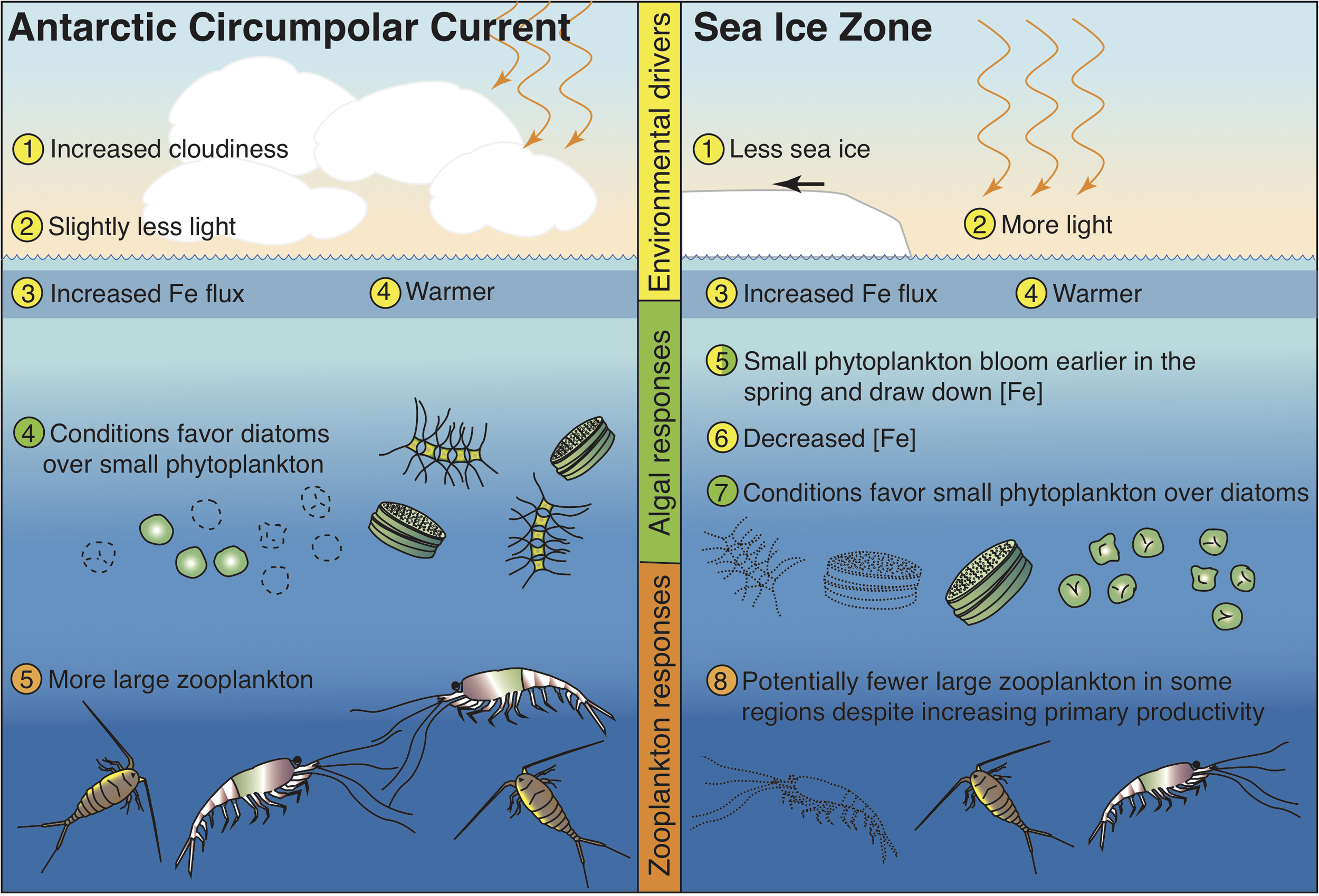 Southern Ocean, phytoplankton, climate change, trophic transfer efficiency, diatoms