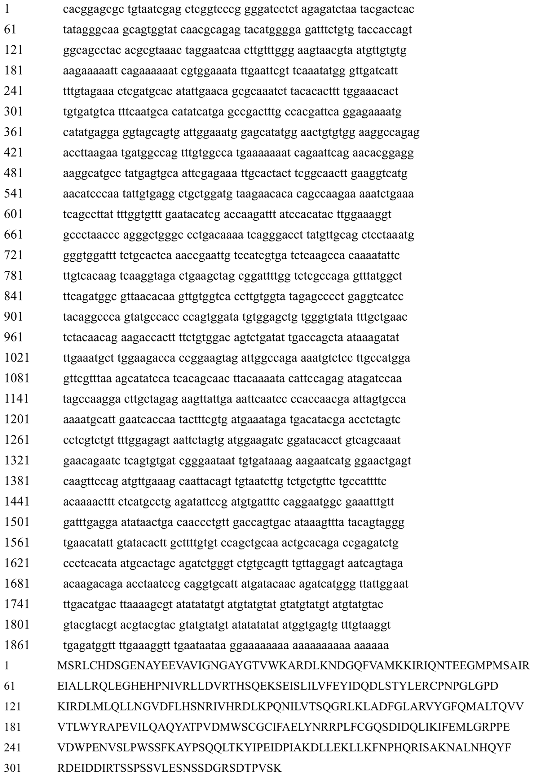 TCGAGCTCAAGCTTCGAATTCATGAGCCGACTTTGCCACG GTACCGTCGACTGCAGAATTCTCATTTGCTGACAGGTGTATCCG AGTTGTGGTCACCTTGTGGT GGATCCTAATACGACTCACTATAGGTGGCCAATCTACTTCCGGTG |