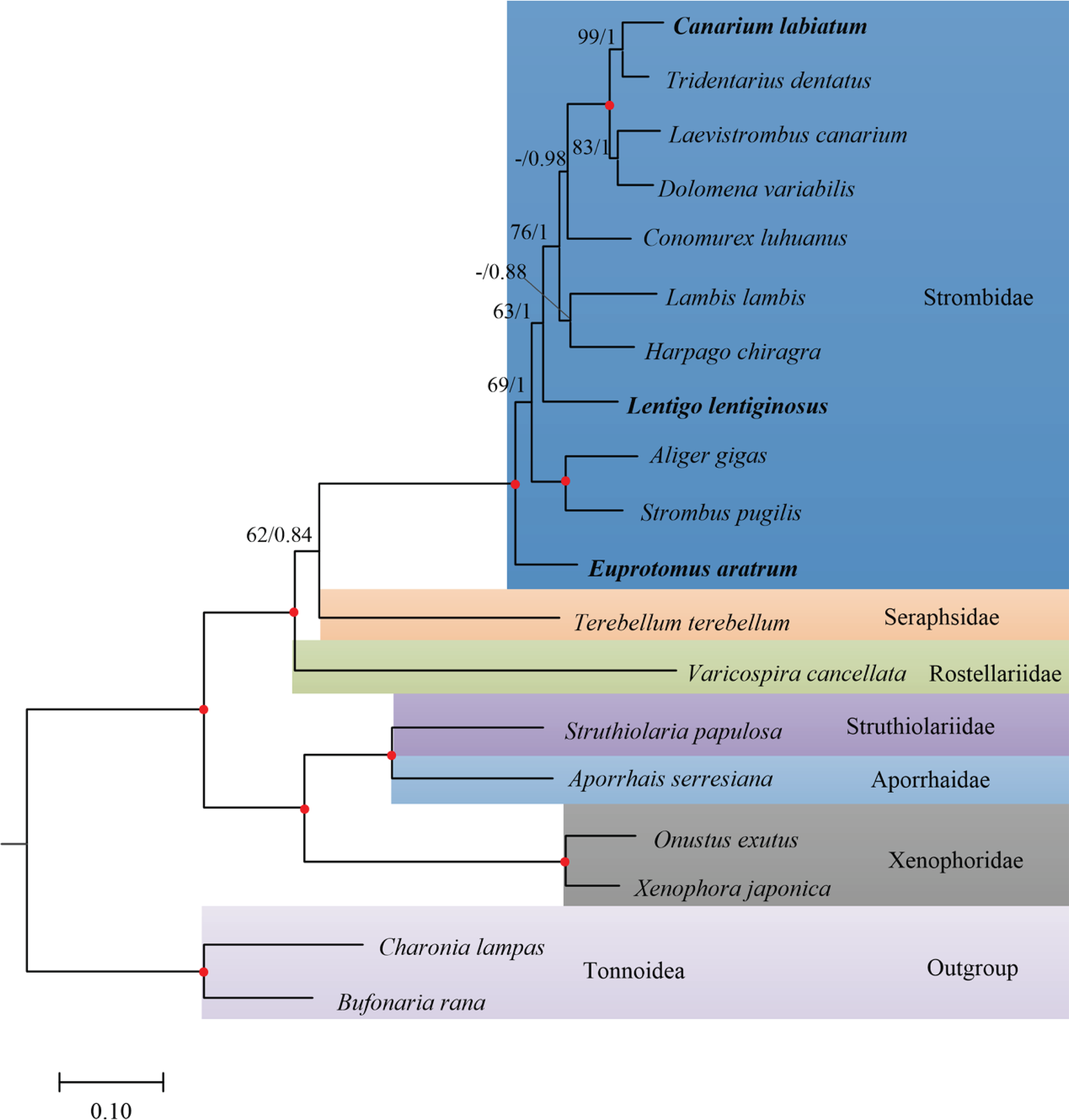 Strombidea, Lentigo lentiginosus , Euprotomus aratrum , Canarium labiatum , mitochondrial genome, phylogeny