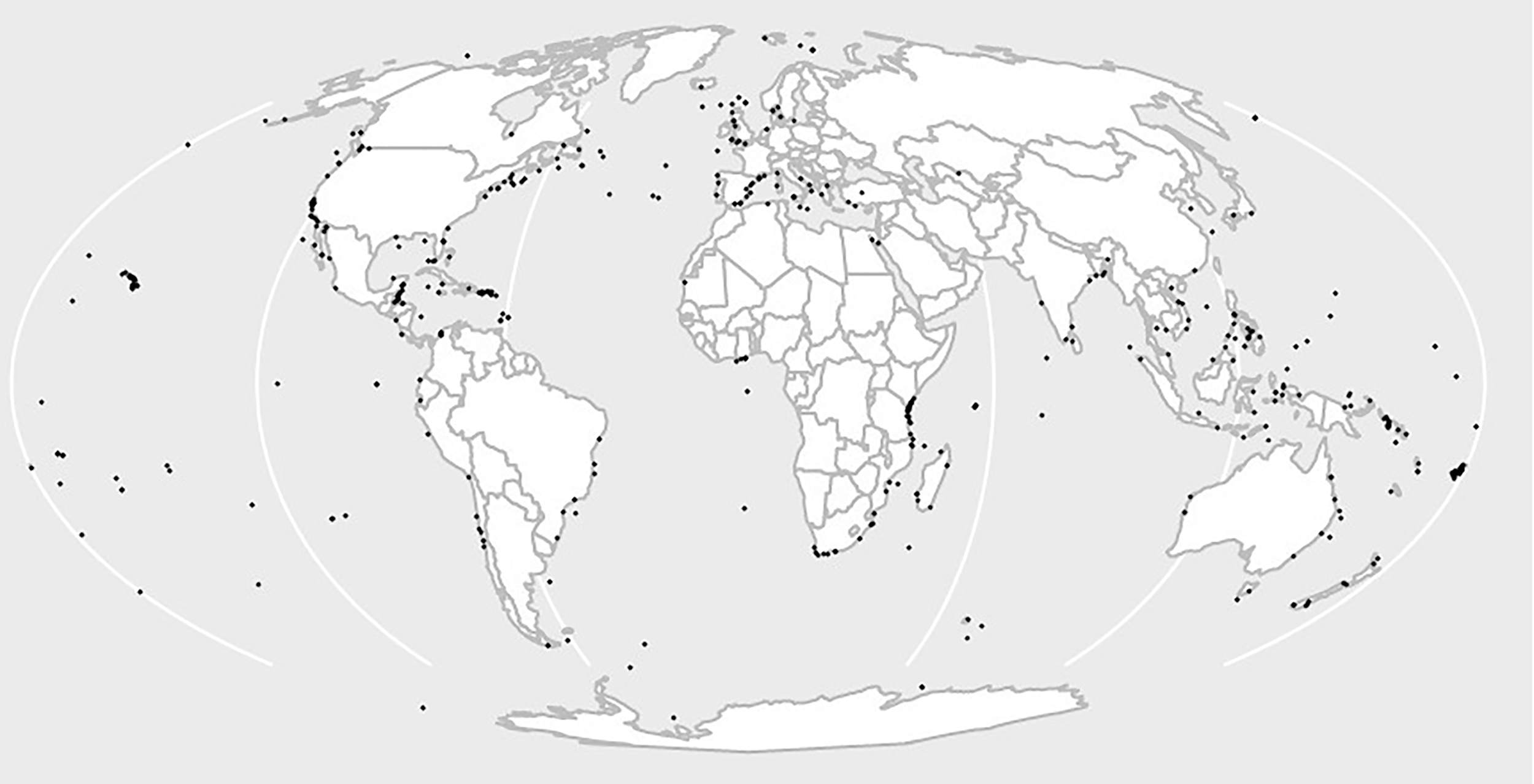Of the 669 case studies for which data were collected, there were 446 unique fisheries ABMT case studies reported (Figure 2), 91 of which were documented by two or more publications. We combined the reported data for each individual case study for which more than one publication was identified in the literature review.