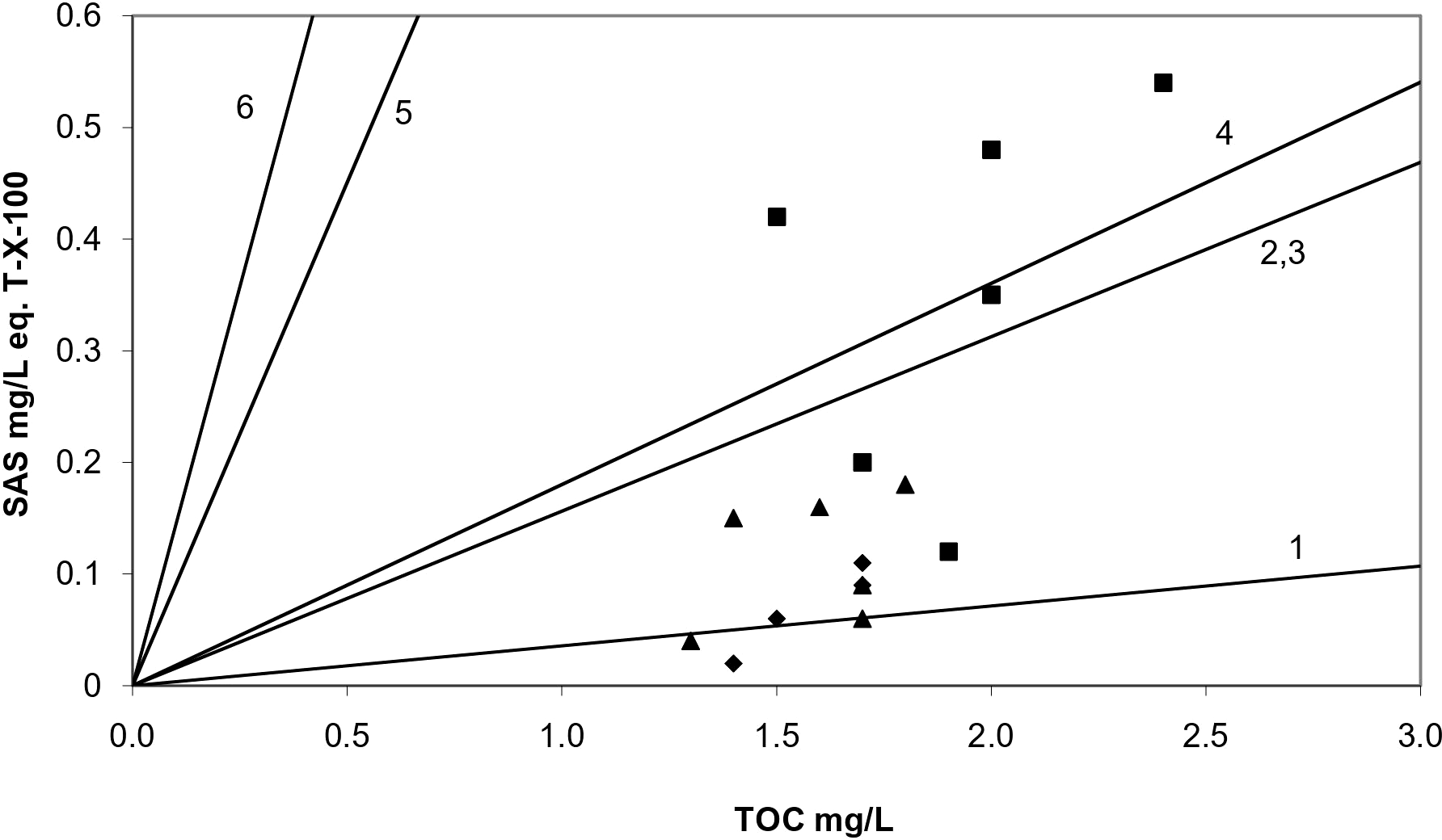 SASs were determined by phase-selective alternating current voltammetry (PSACV) (Ćosović et al., 1985). Surfactant activity was expressed in terms of surfactant equivalents of the non-ionic surface-active compound Triton-X100 (MW ~600) in mg L-1.