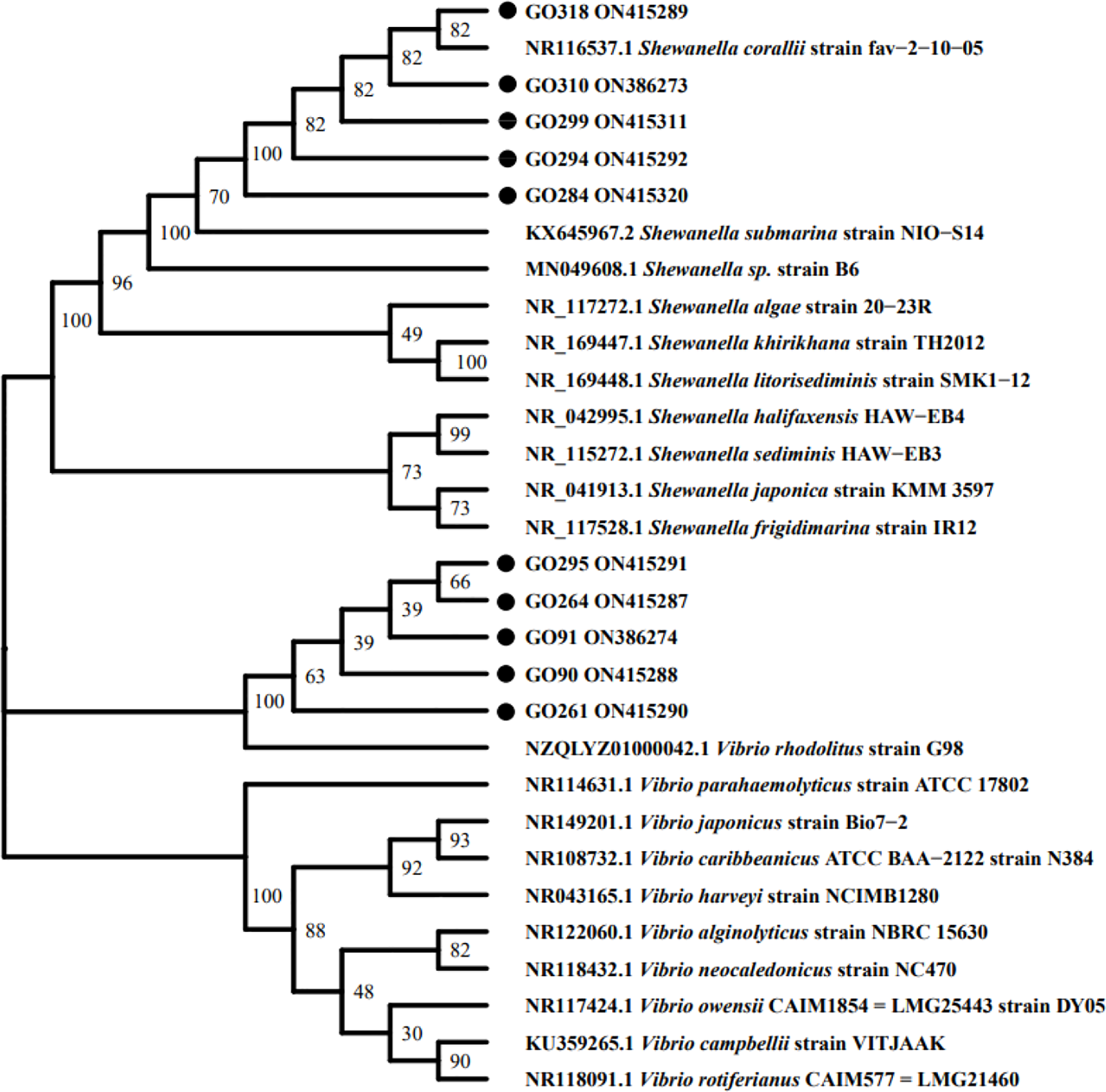 Bacterial DNA was extracted using the MiniBEST Bacteria Genomic DNA Extraction Kit (TaKaRa, Dalian, China) following the manufacturer’s protocol. The 16S ribosomal RNA gene was amplified using universal primer of Beijing Genomics Institute (BGI) (Beijing, China). The sequences of the primer were: 27F (5´- AGAGTTTGATCCTGGCTCAG -3´), and 1942R (5´- GGTTACCTTGTTACGACTT -3´). The PCR products were sequenced at the Beijing Genomics Institute (BGI) (Beijing, China). The obtained sequences were blasted against GenBank sequences. Multiple sequence alignments were obtained using software package MEGA-X. Phylogenetic tree was constructed using neighbor-joining (NJ) method. The robustness of each topology was checked by 1000 bootstrap replications.